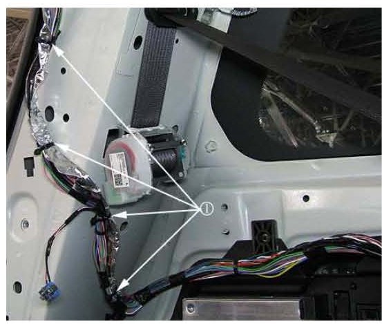 17. Route the RCDLR wiring harness along the side of the existing rear body harness with tie straps (1).