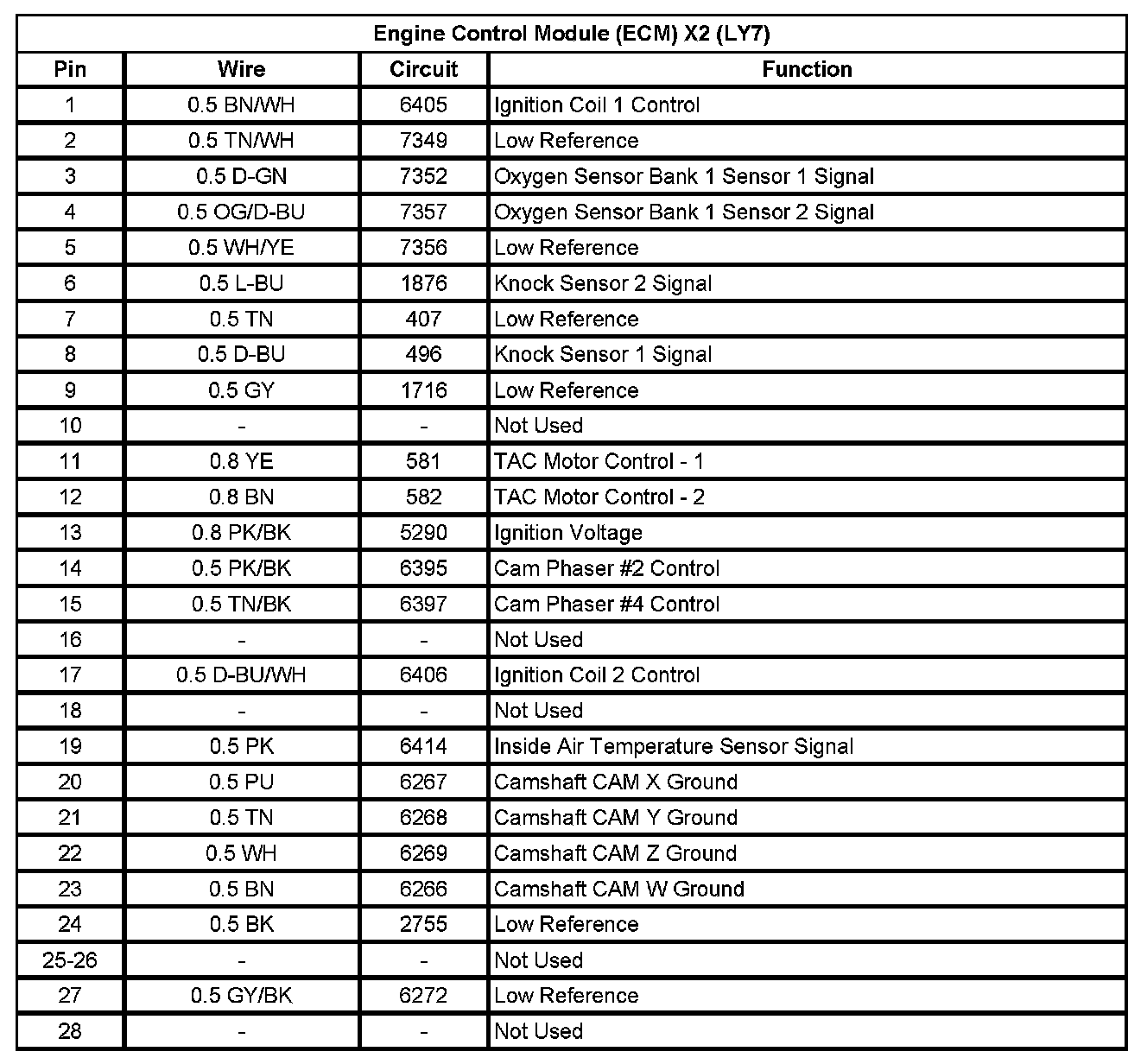 Engine Control Module (ECM) X2 (LY7) (Pin 1 To 28):