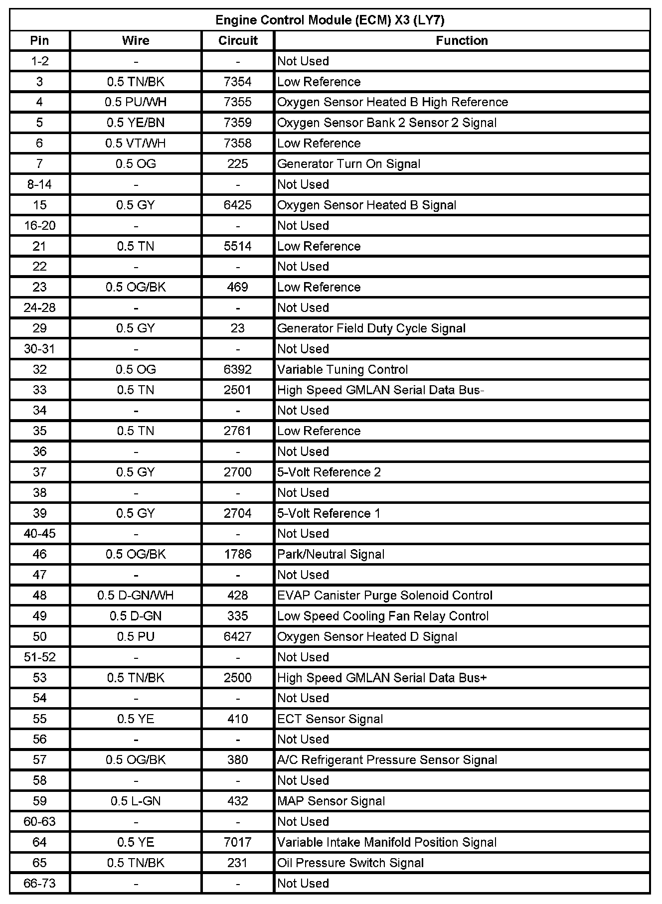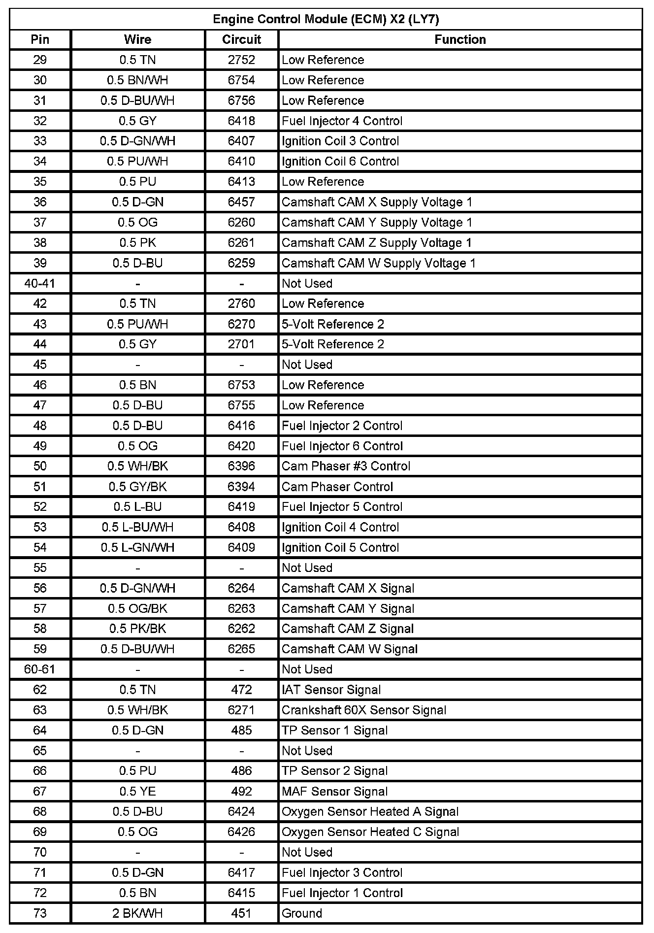 Engine Control Module (ECM) X2 (LY7) (Pin 29 To 73):