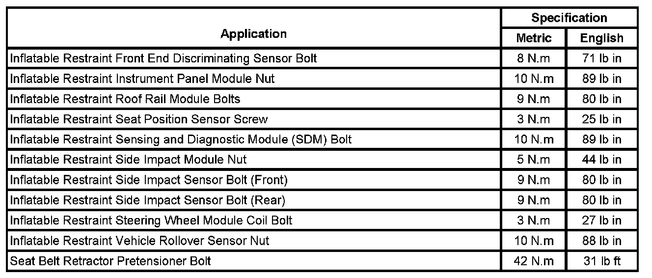 Air Bag Systems: Specifications