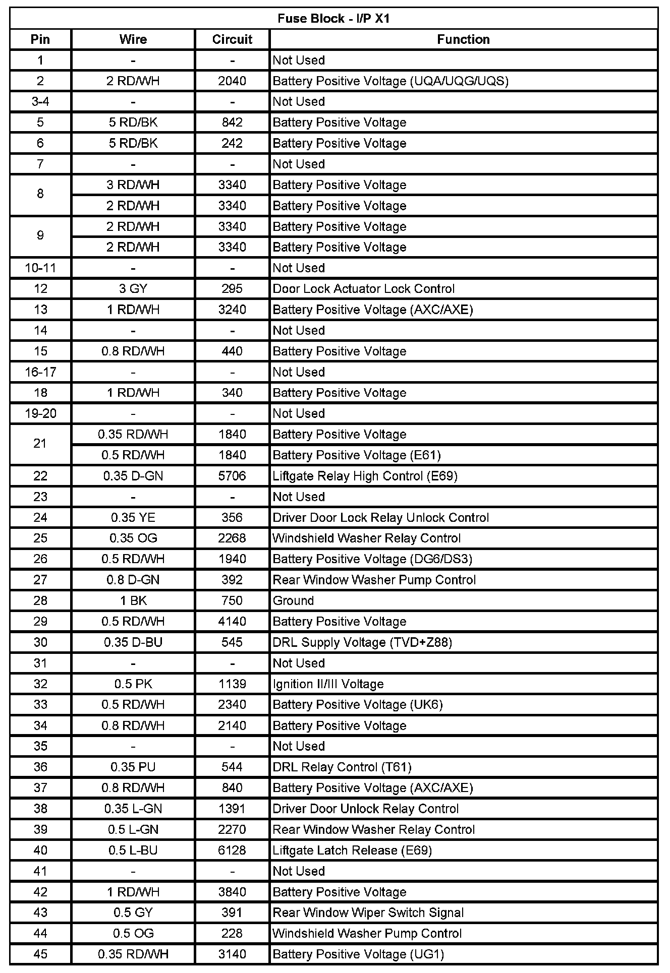 Fuse Block - I/P X1 (Pin 1 To 45):