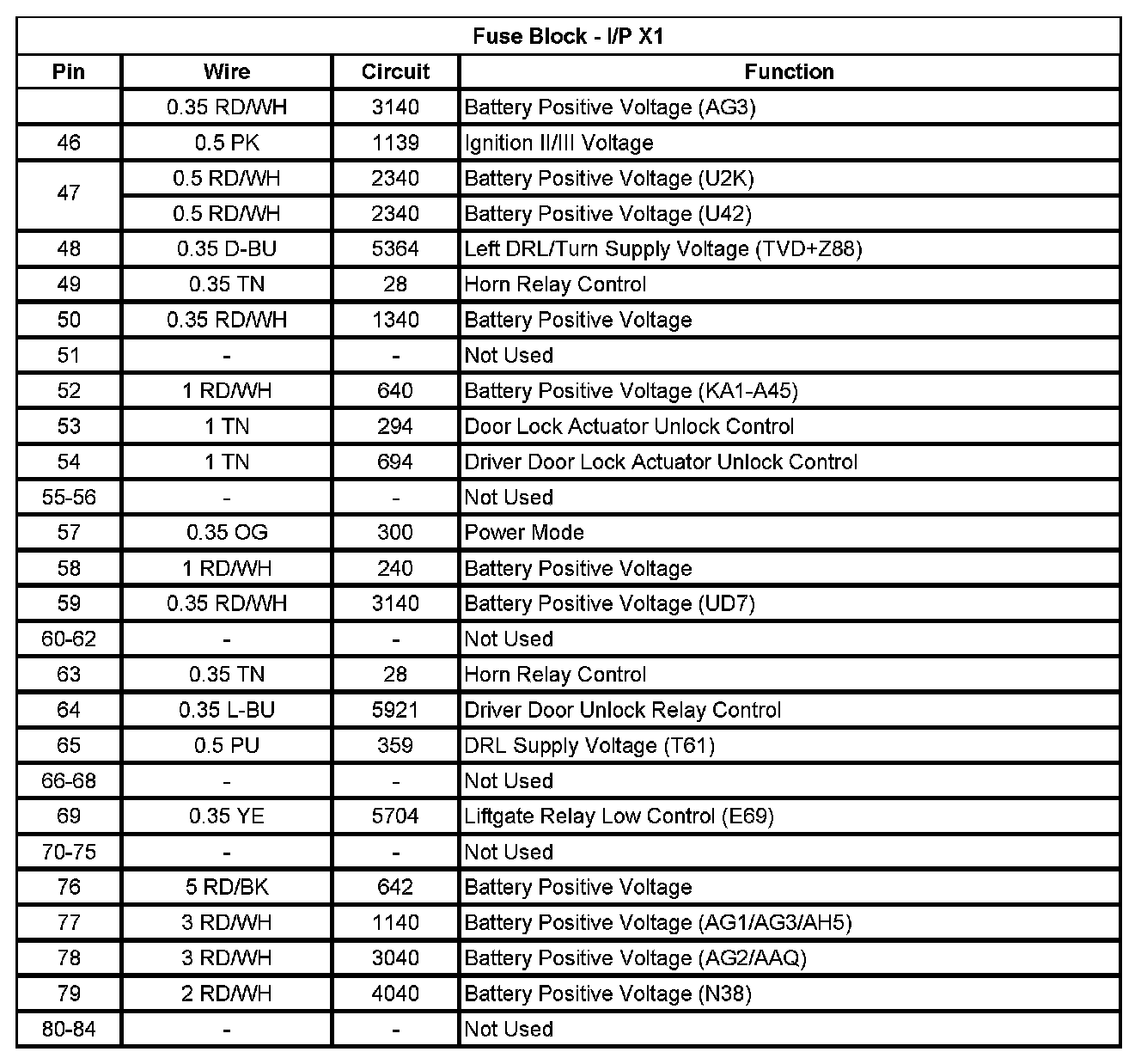 Fuse Block - I/P X1 (Pin 46 To 84):