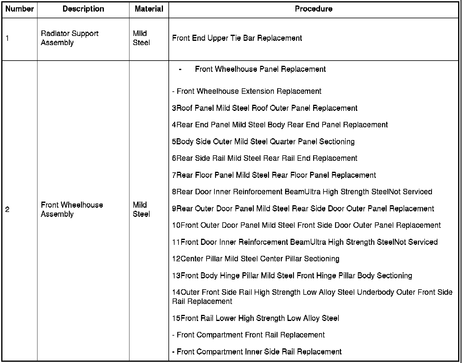 11Front Door Inner Reinforcement BeamUltra High Strength SteelNot Serviced
