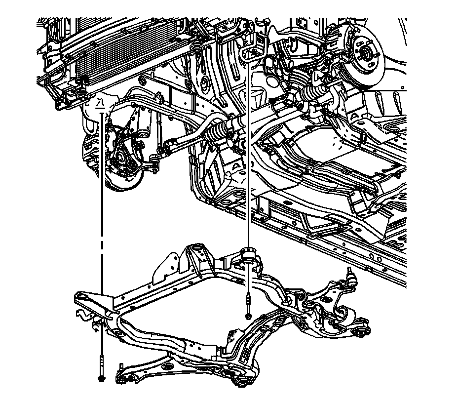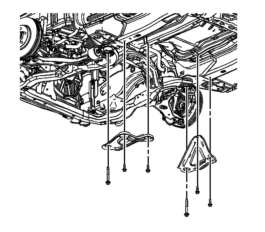 1.Remove the frame reinforcements. Refer to Drivetrain and Front Suspension Frame Reinforcement Replacement .