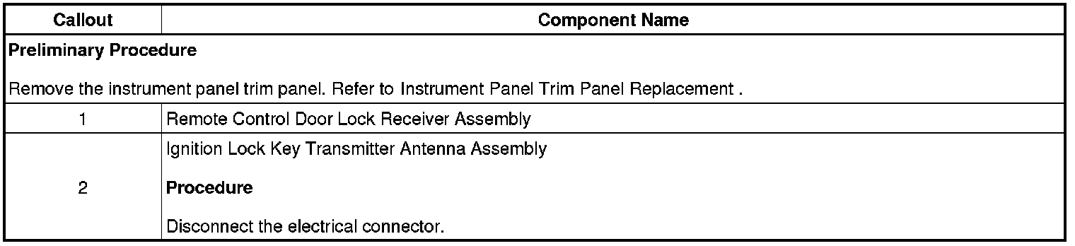 Ignition Lock Key Transmitter Antenna Replacement - Instrument Panel