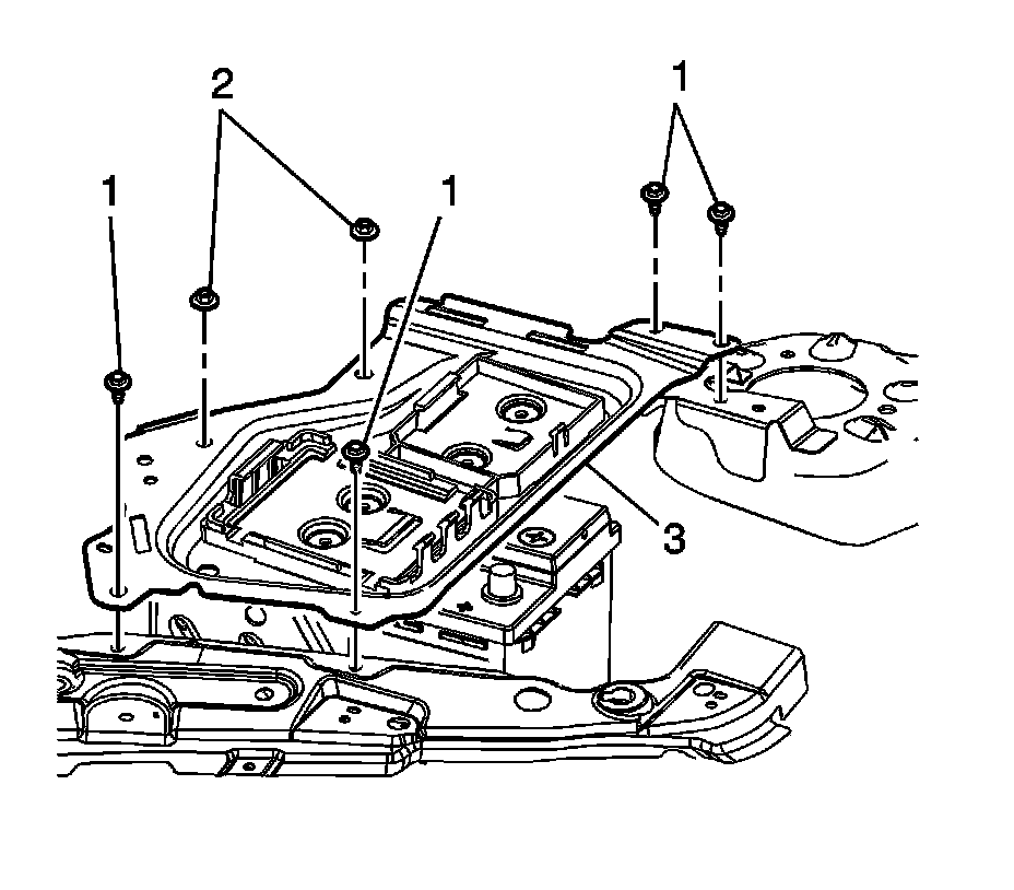 9. Install the ECM bracket (3), bolts (1) and nuts (2).