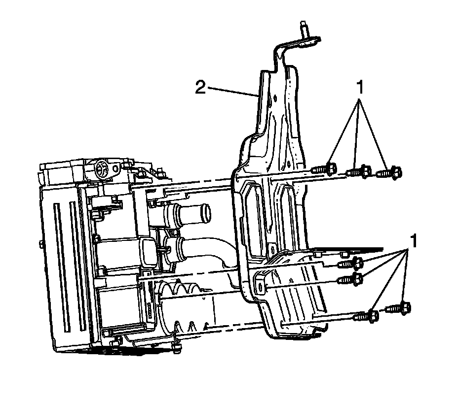 1. Install the generator control bracket bolts (1) and the generator control module bracket (2).