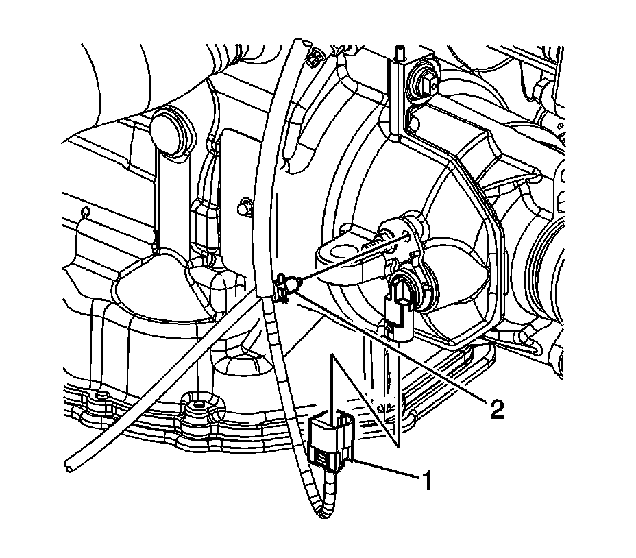 2. Remove the vehicle speed sensor (VSS) electrical connector (1) from the VSS.