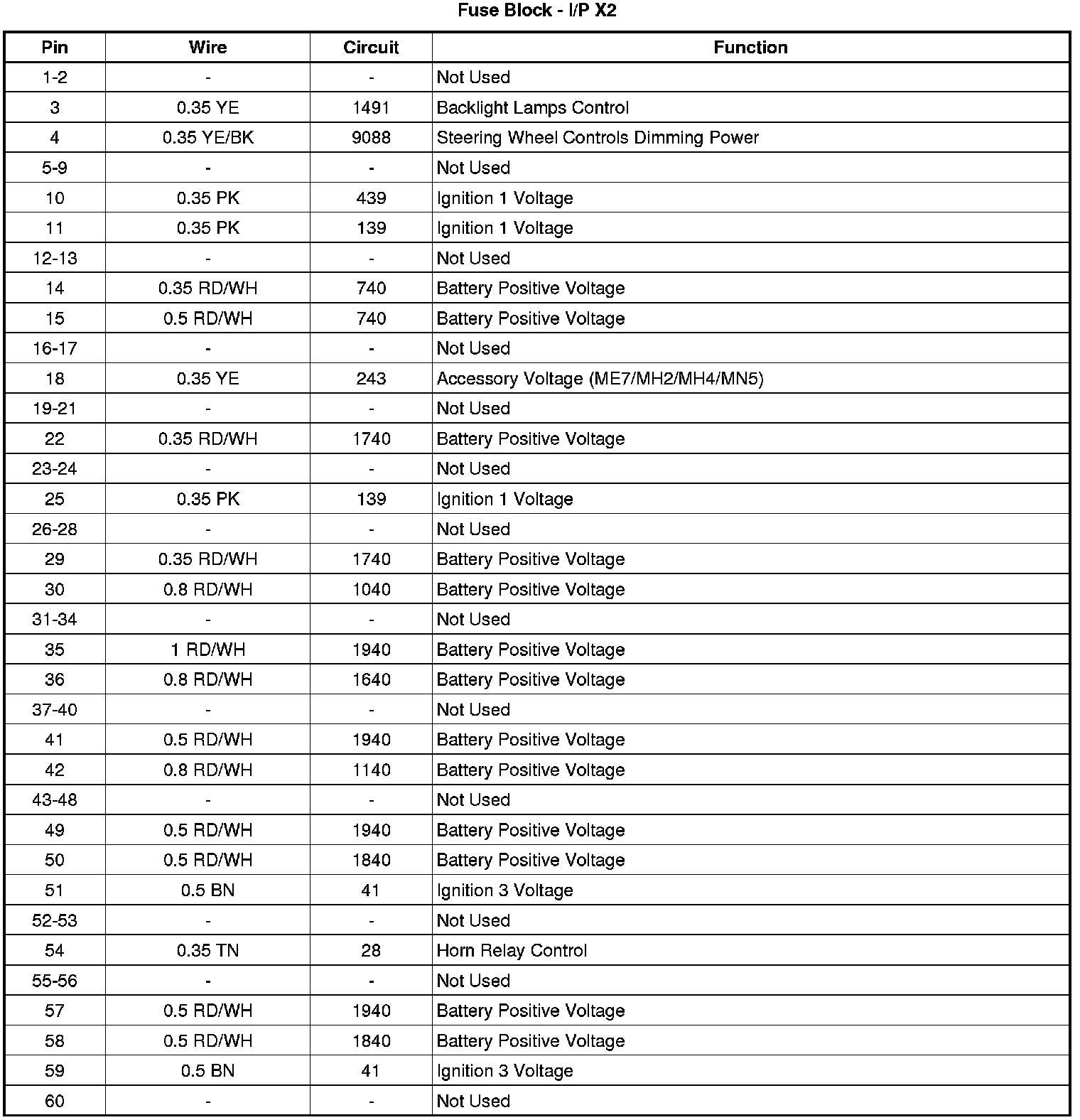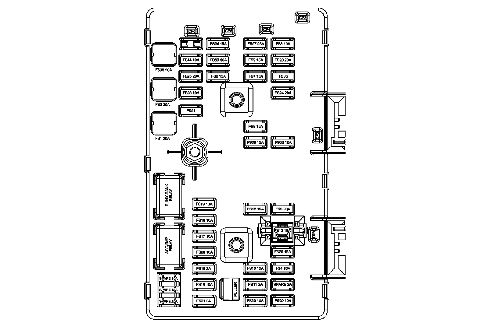 Fuse Block - I/P Bottom View