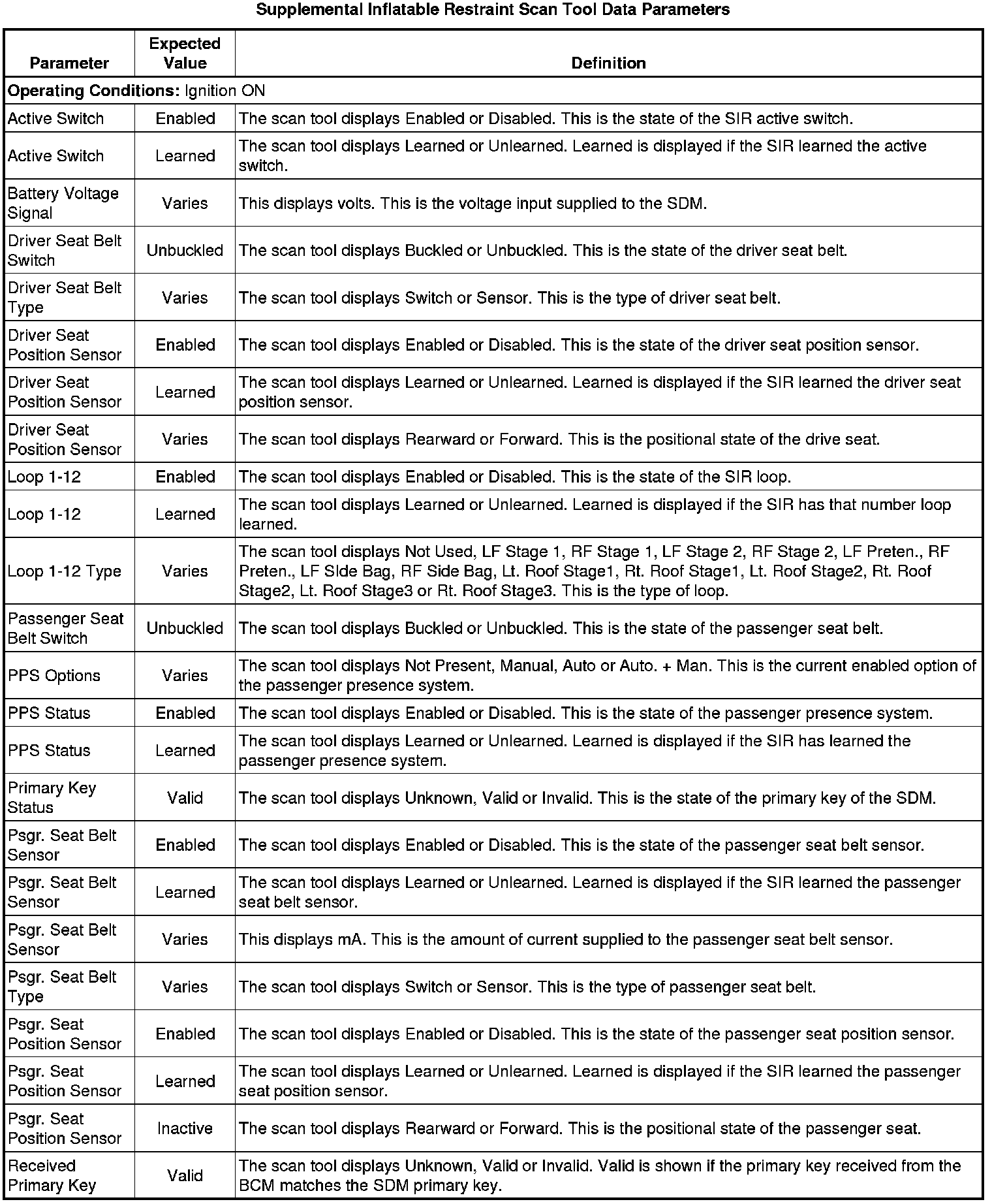 Inflatable Restraint Sensing and Diagnostic Module Scan Tool Information