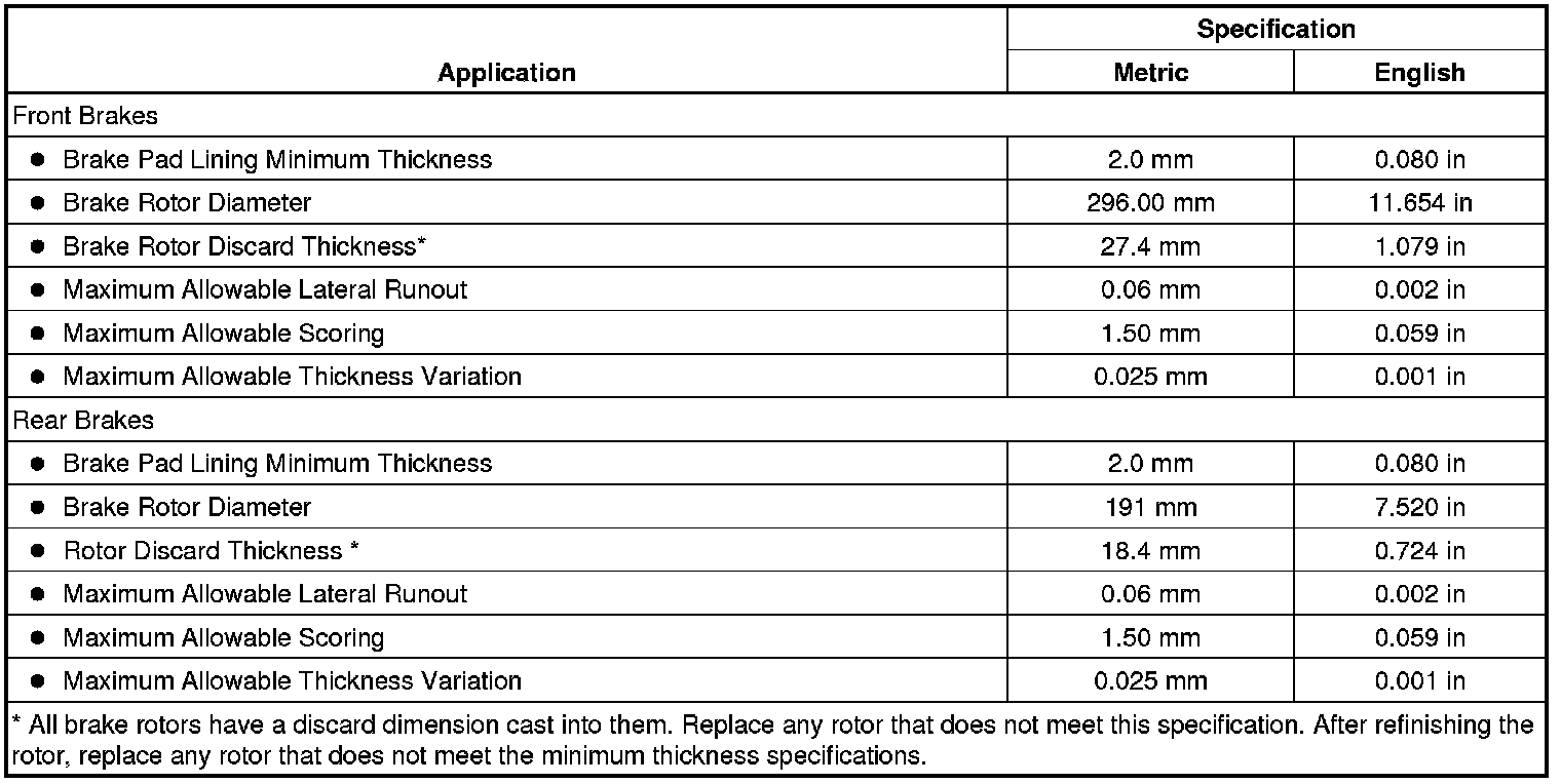 Disc Brake Component Specifications