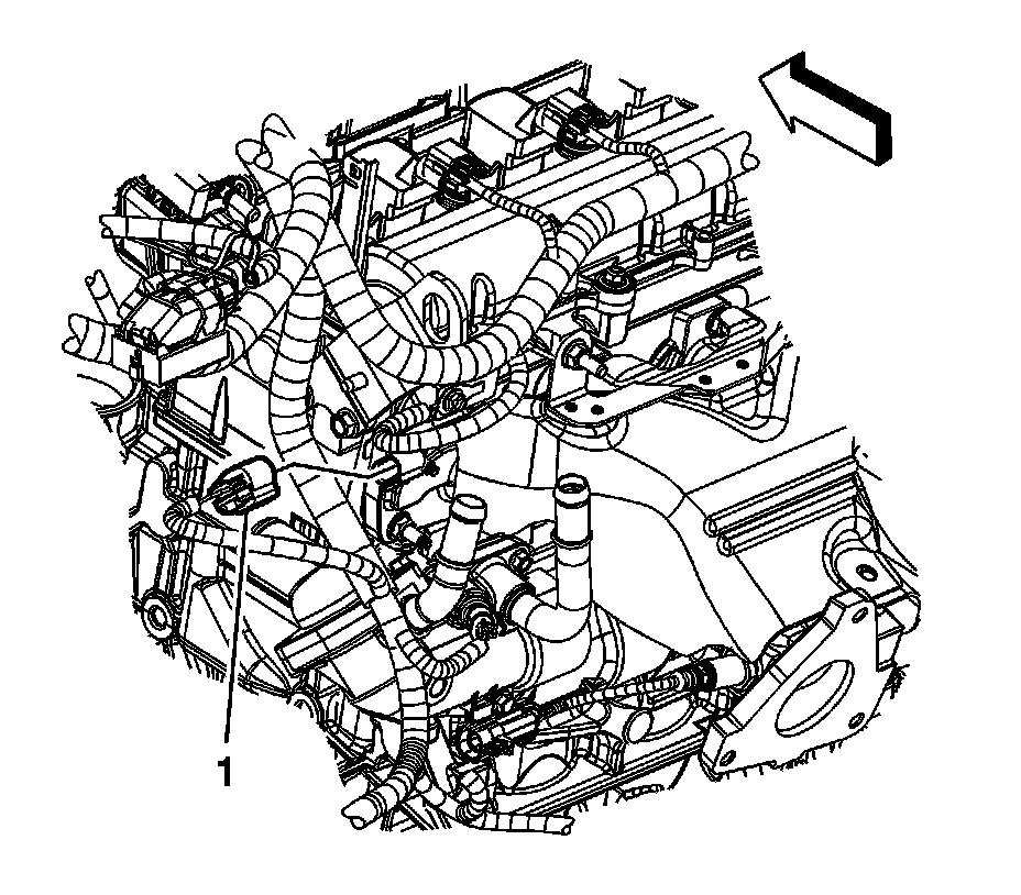 79. Disconnect the engine wiring harness electrical connector (1) from the engine coolant temperature (ECT) sensor.