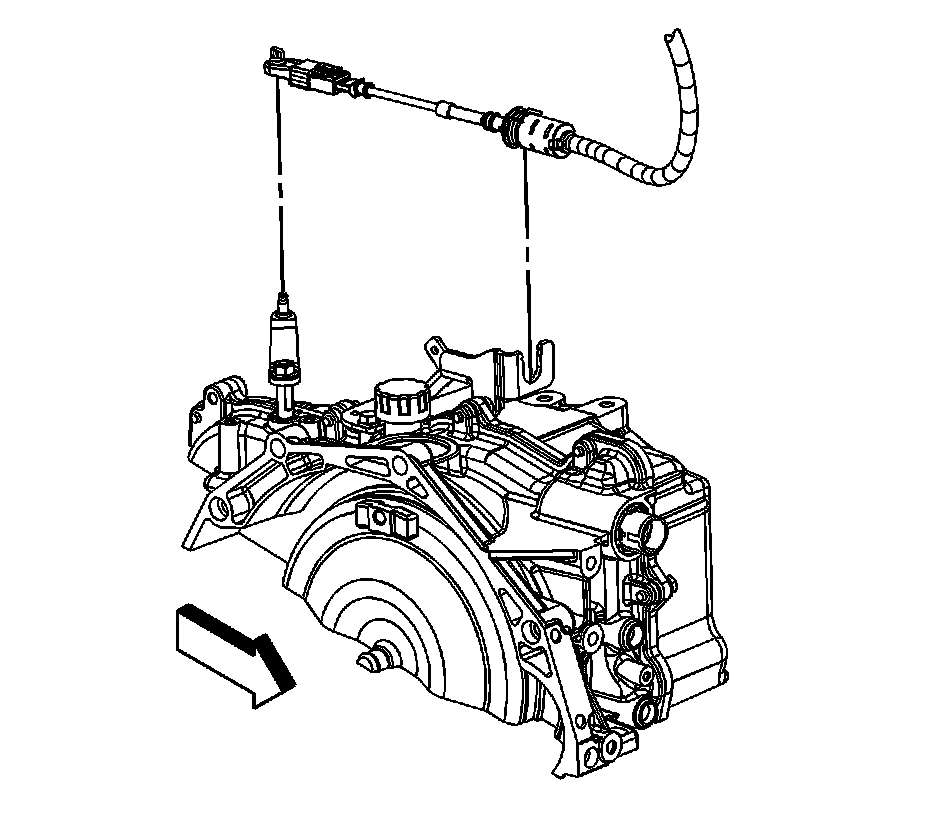 40. Release the shift control cable retaining clip and remove the cable from the shift control cable bracket.