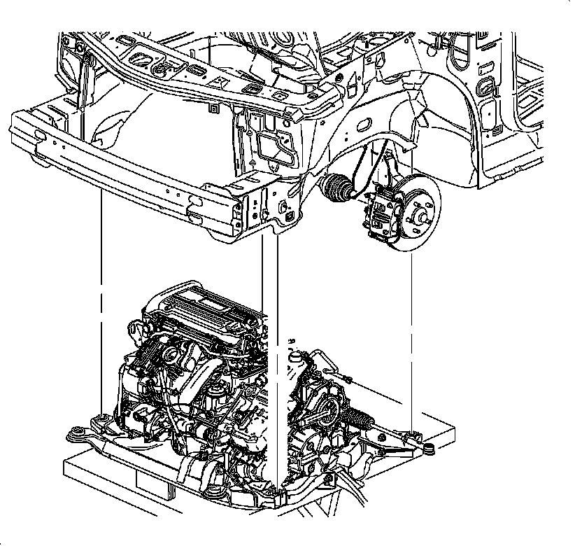 Important: When lowering the engine/transaxle assembly, verify all brake lines, shifter cables and other components are free during removal.