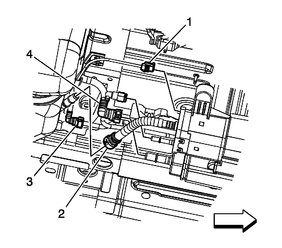 3. Disconnect the chassis fuel feed line quick connect fitting (3) from the fuel rail. Refer to Metal Collar Quick Connect Fitting Service (Metal Collar Quick Connect Fitting Service) .