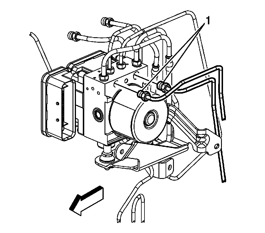 6. Remove the rear brake pipe fittings (1) from the brake pressure modulator valve (BPMV).