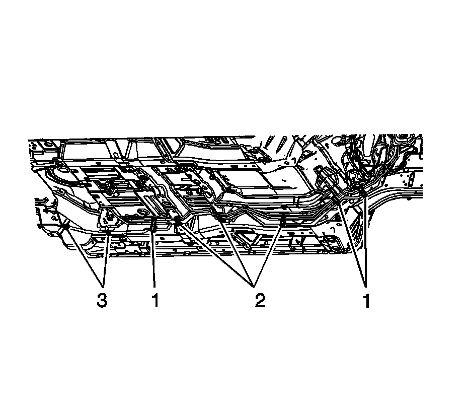 17. Remove the brake line retainers (3) from the underbody side rail.