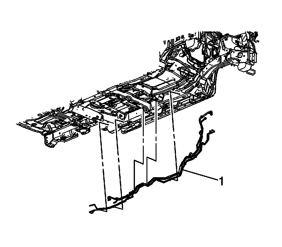 2. Install the brake, fuel and EVAP line bundle (1) to the vehicle.