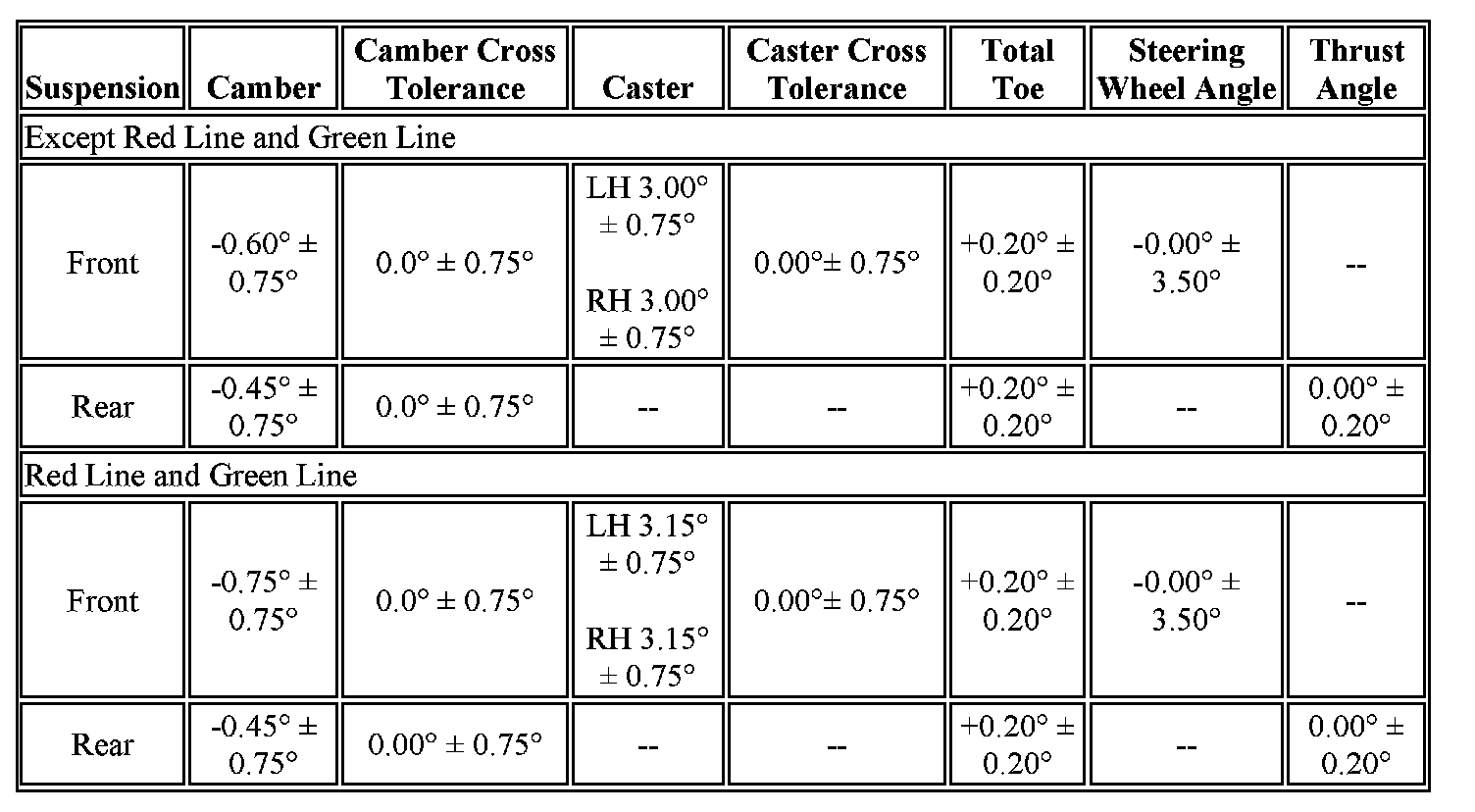 Wheel Alignment Specifications