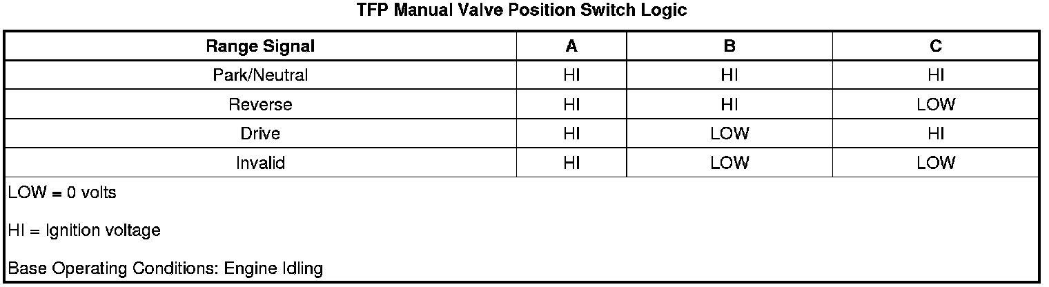Transmission Fluid Pressure Manual Valve Position Switch Logic