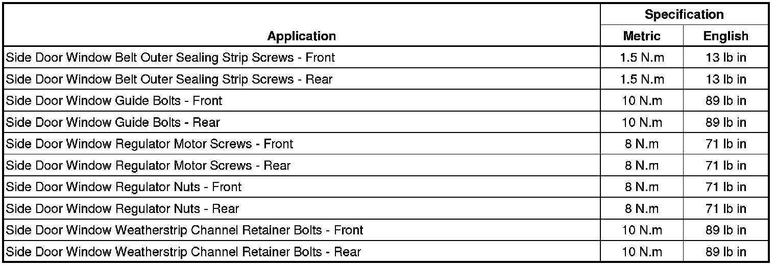 Fastener Tightening Specifications