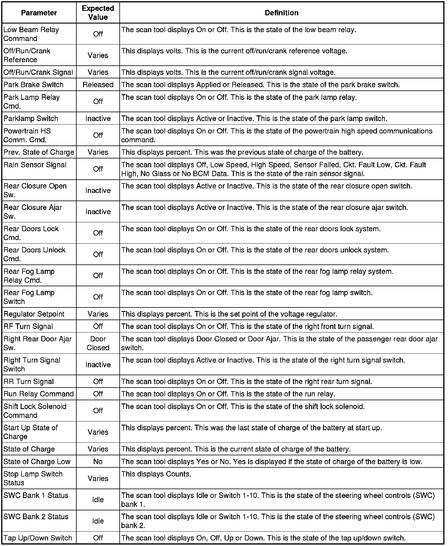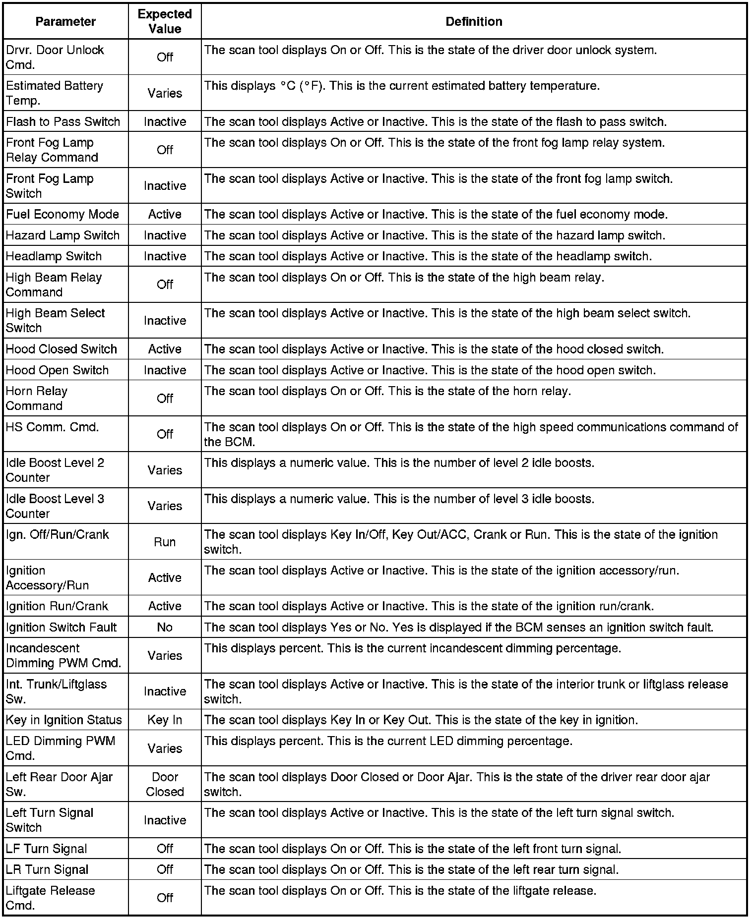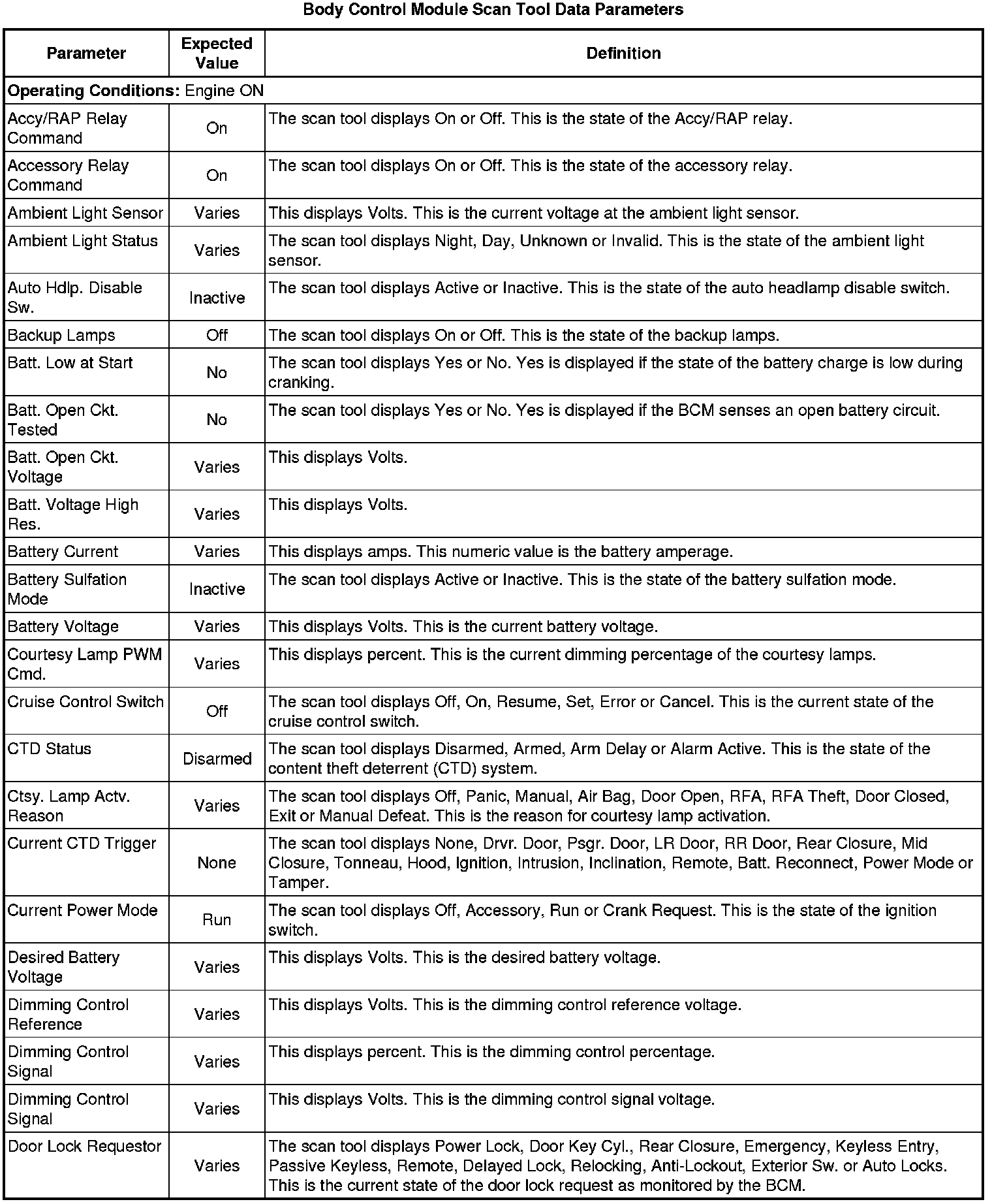 Body Control Module Scan Tool Information