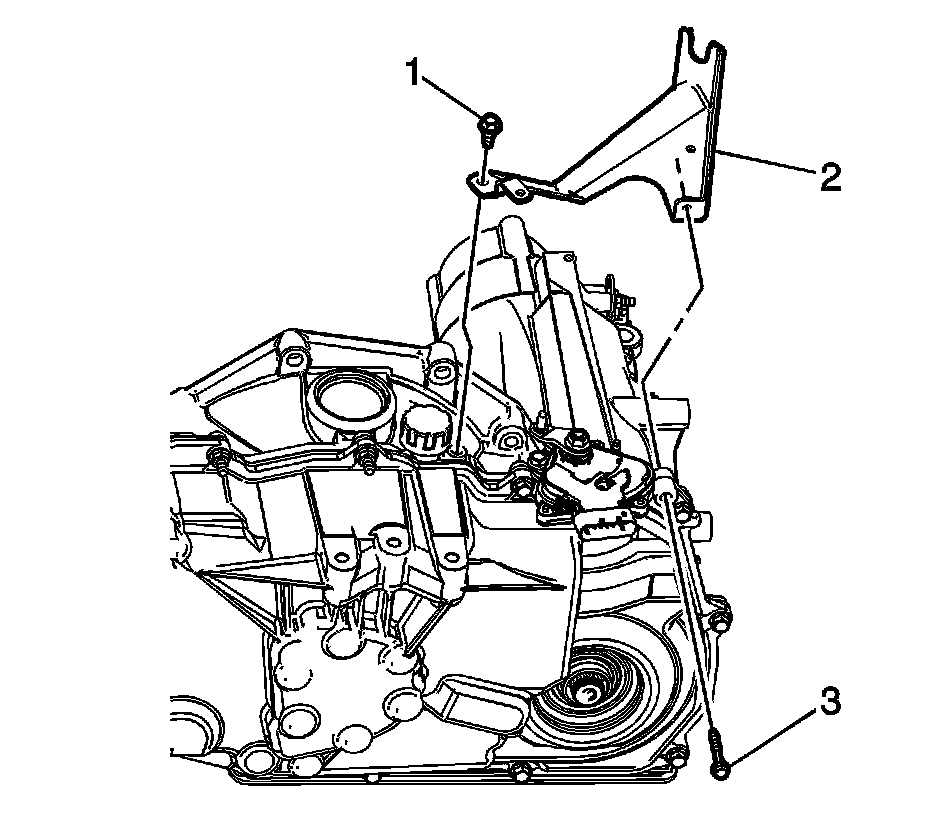 15. Remove the bolts (2, 3) from the transmission brace.