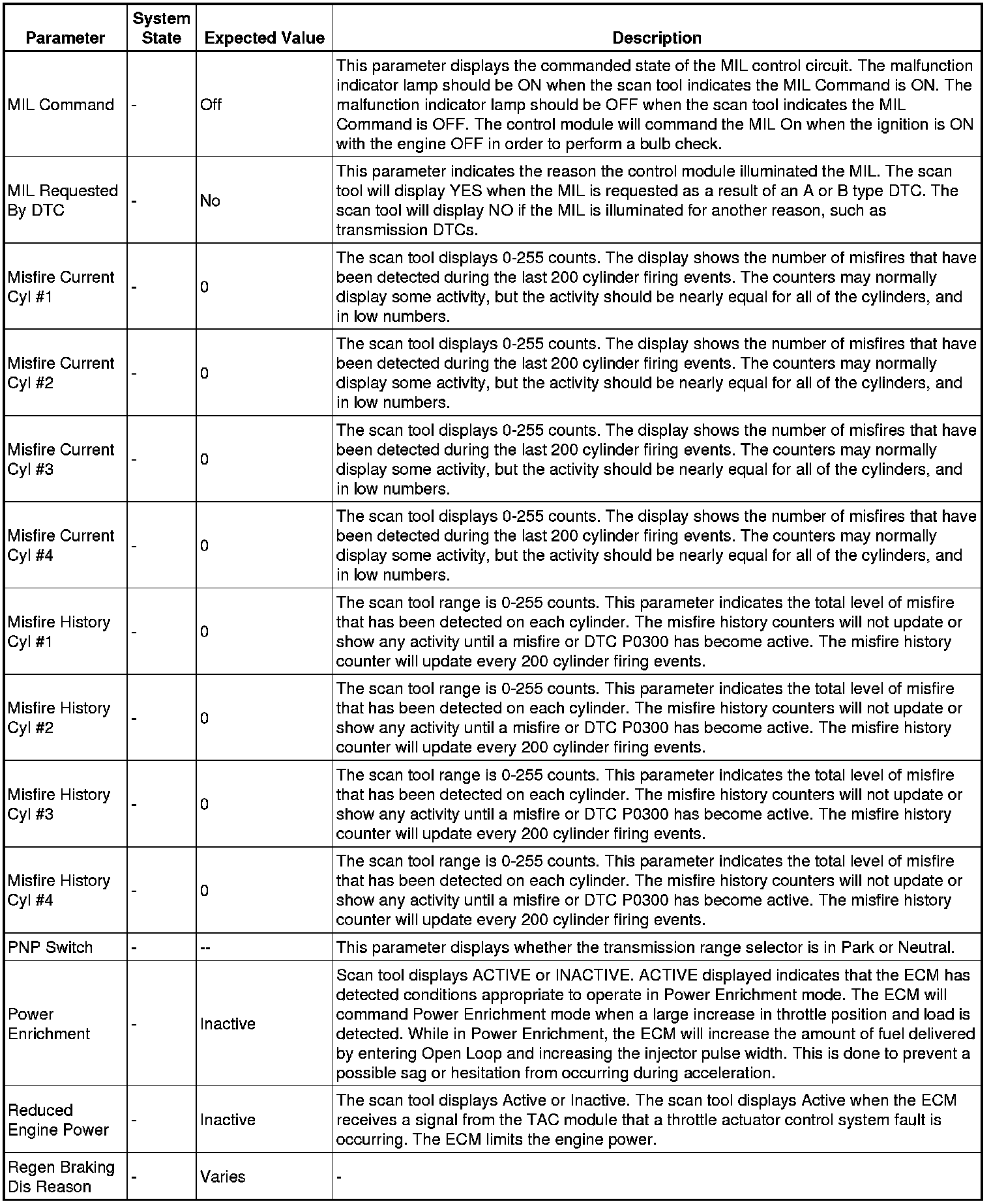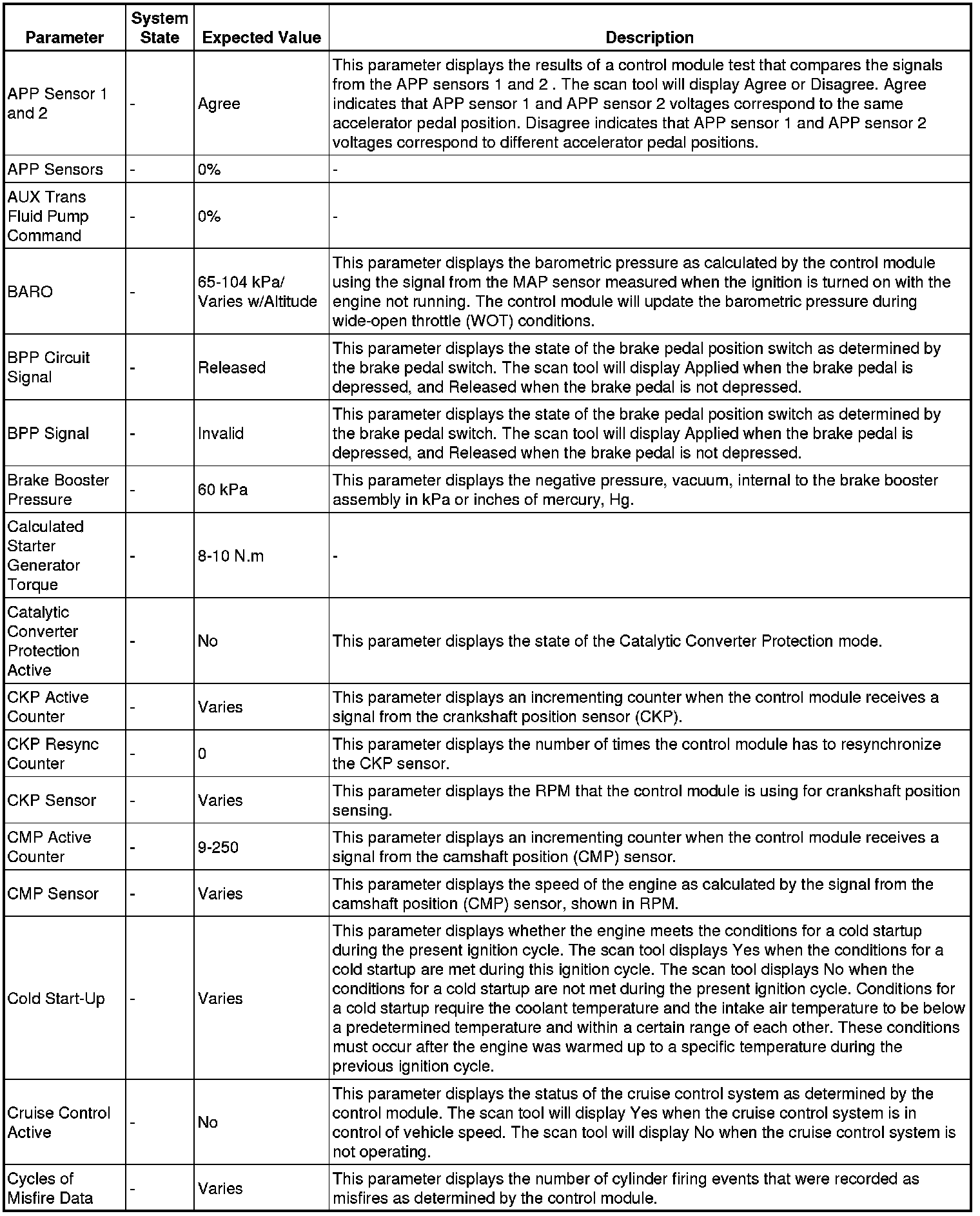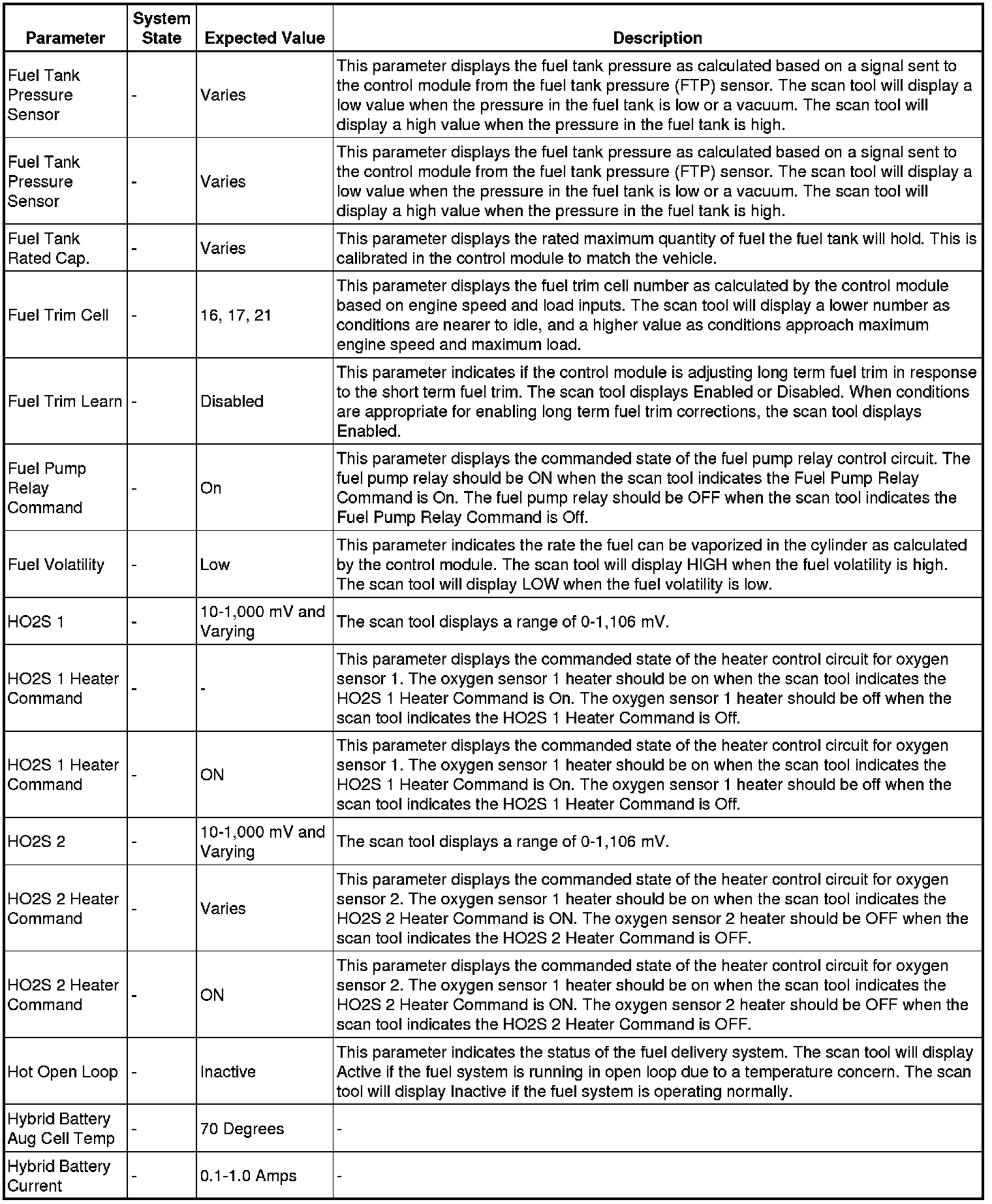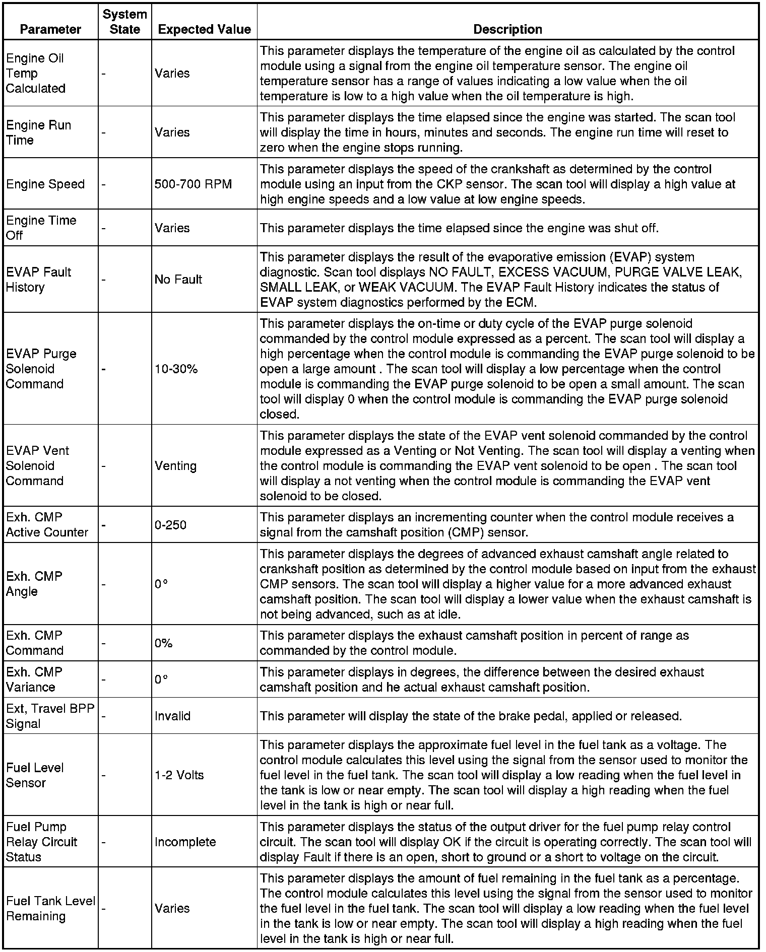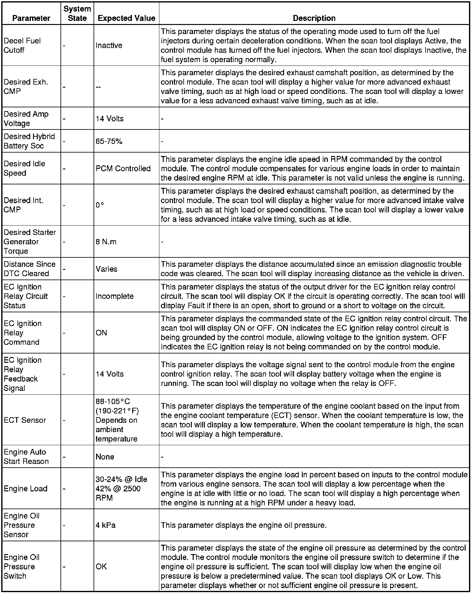 The Engine Scan Tool Data List contains all engine related parameters that are available on the scan tool. The list is arranged in alphabetical order.