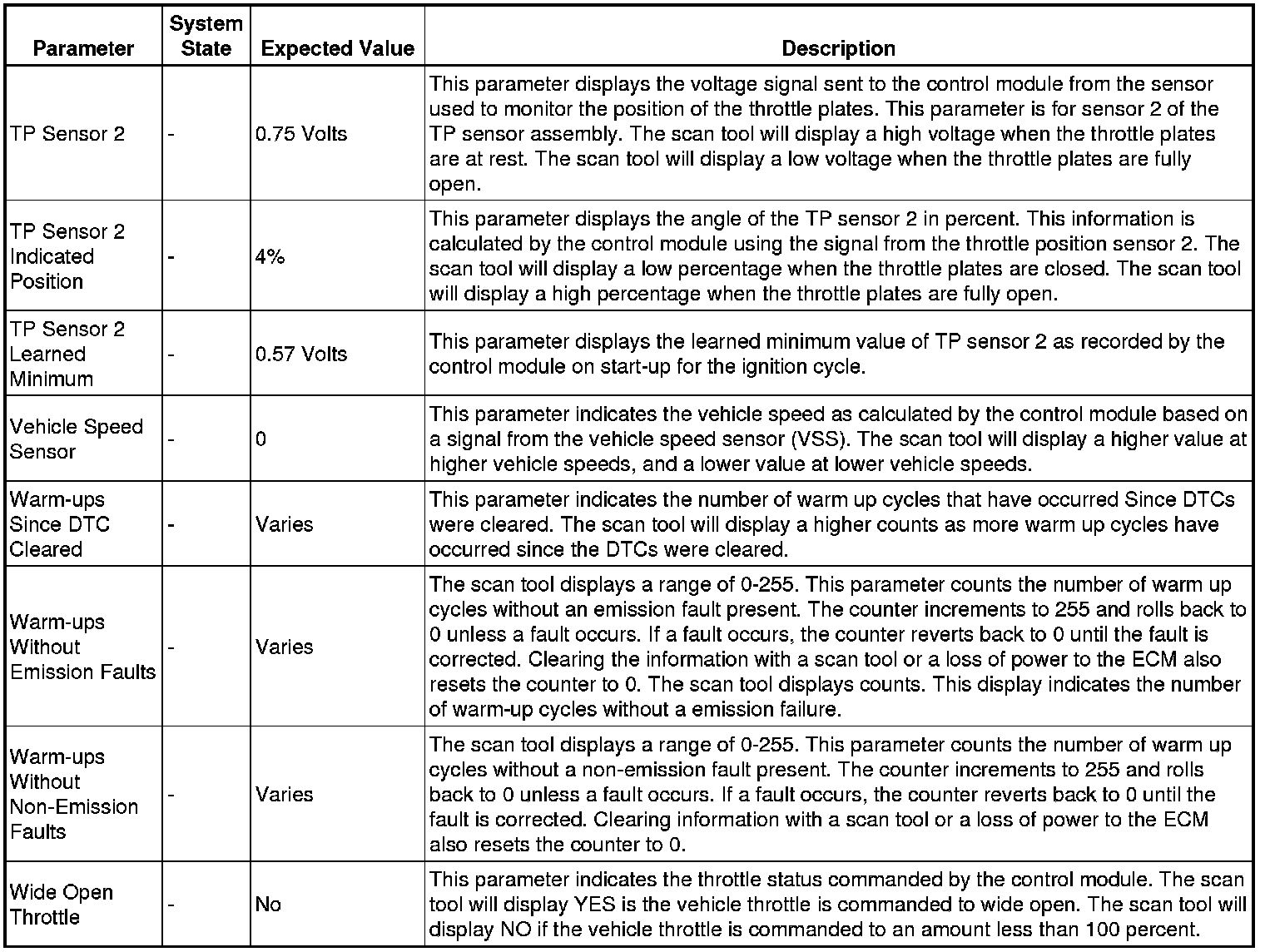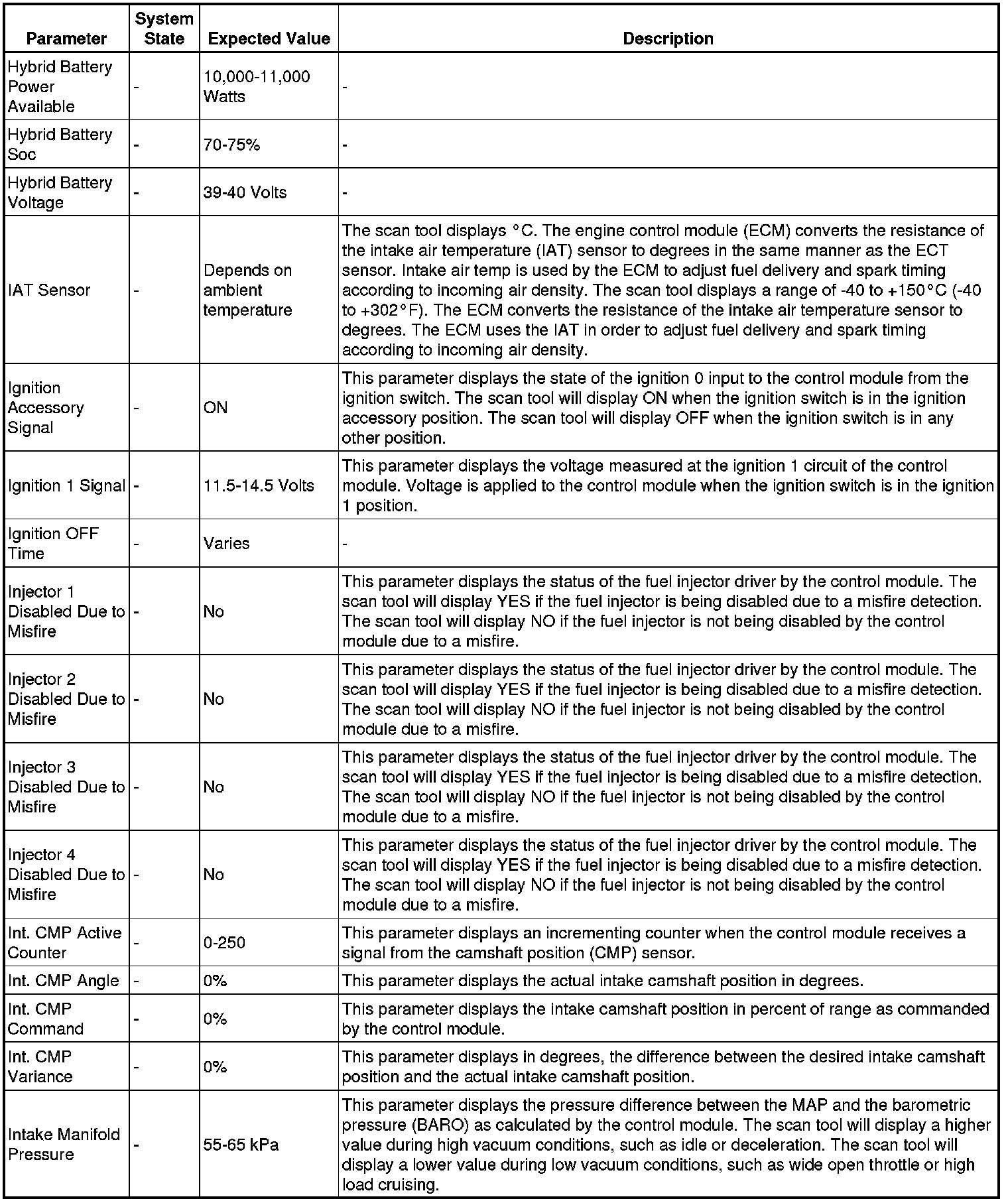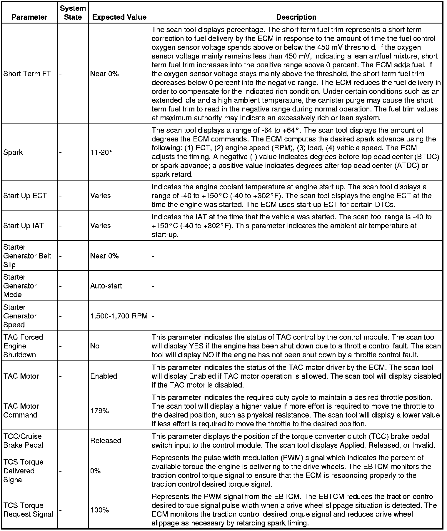 Only the parameters listed below are referenced in this service manual for use in diagnosis. If all values are within the typical range described below, Refer to Symptoms - Engine Controls (- Symptoms - Engine Controls) for diagnosis.