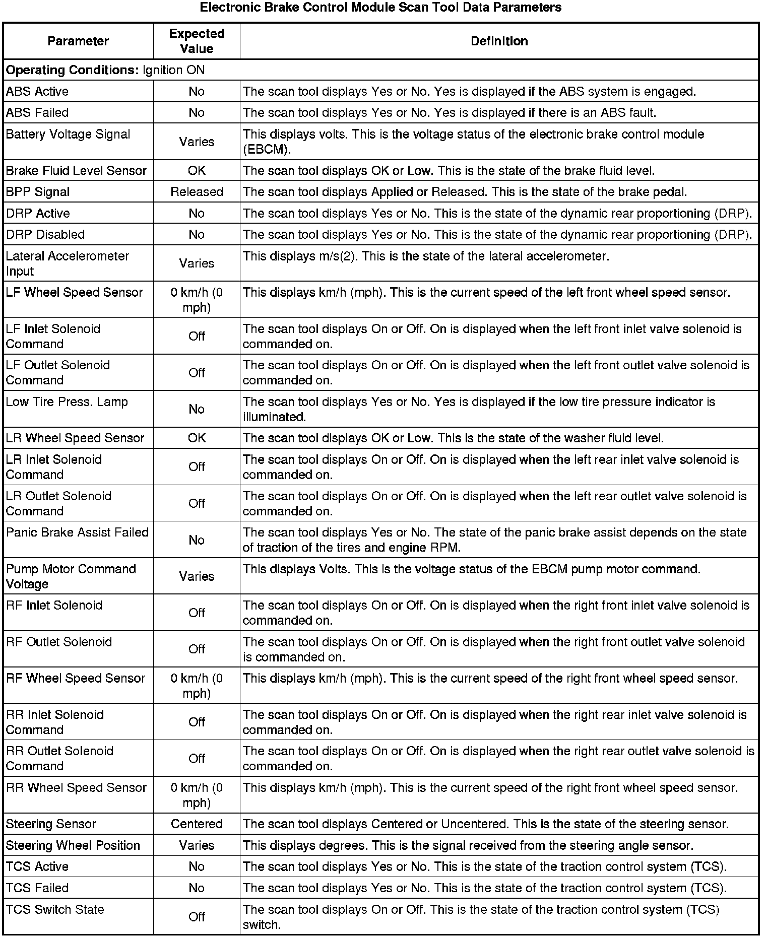 Electronic Brake Control Module Scan Tool Information