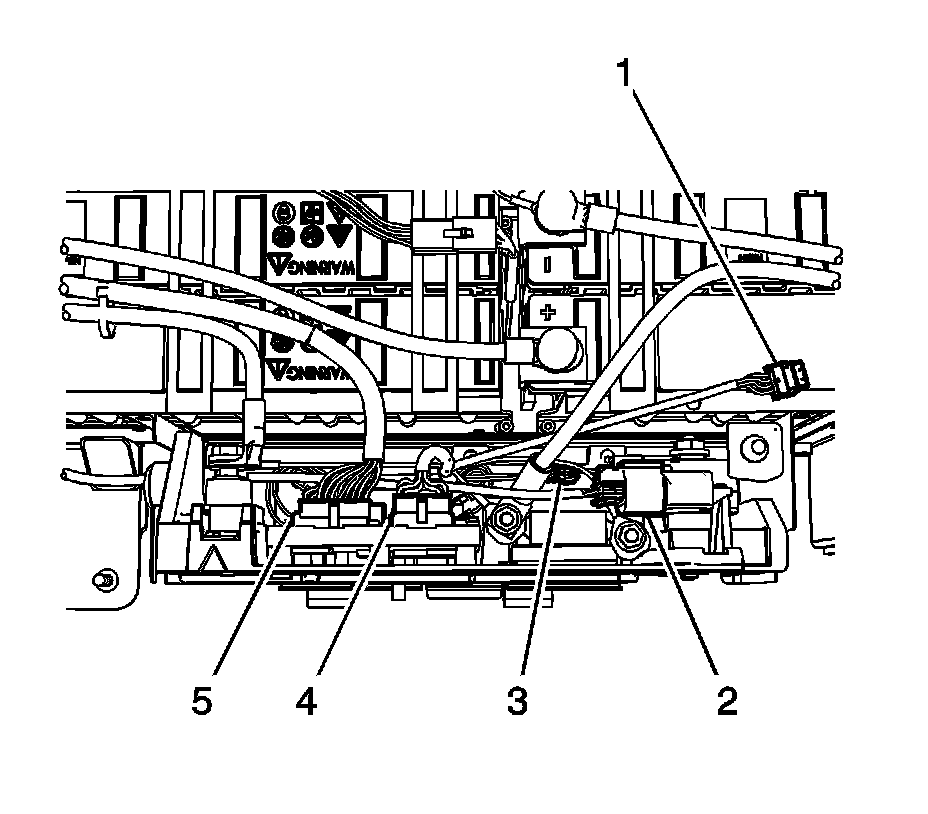 5. Connect the generator battery temperature sensor wiring harness electrical connectors (2, 5) to the generator control module.