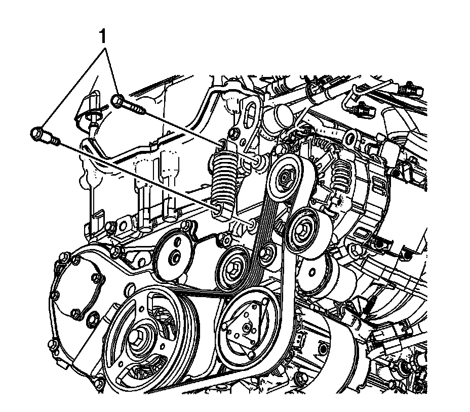 4. Remove the tensioner spring bolts (1) from the tensioner.