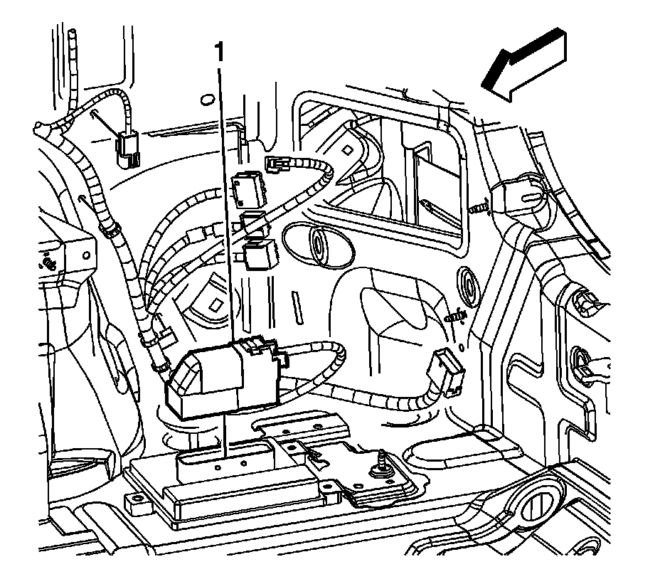 4. Connect the body wiring harness electrical connector (1) to the fuel pump flow control module.