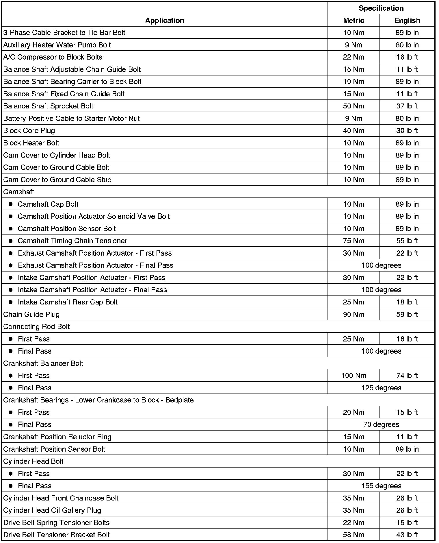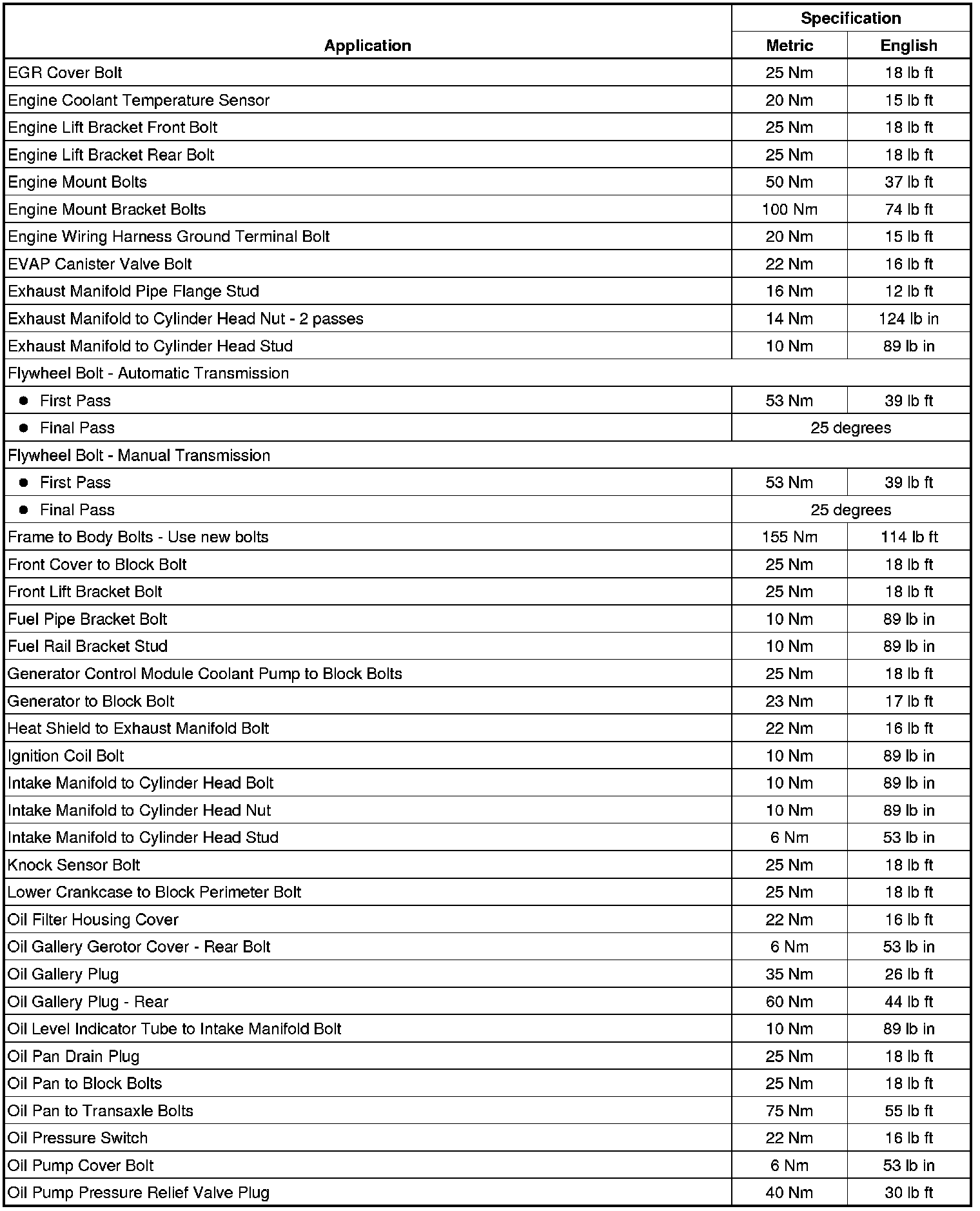 Fastener Tightening Specifications