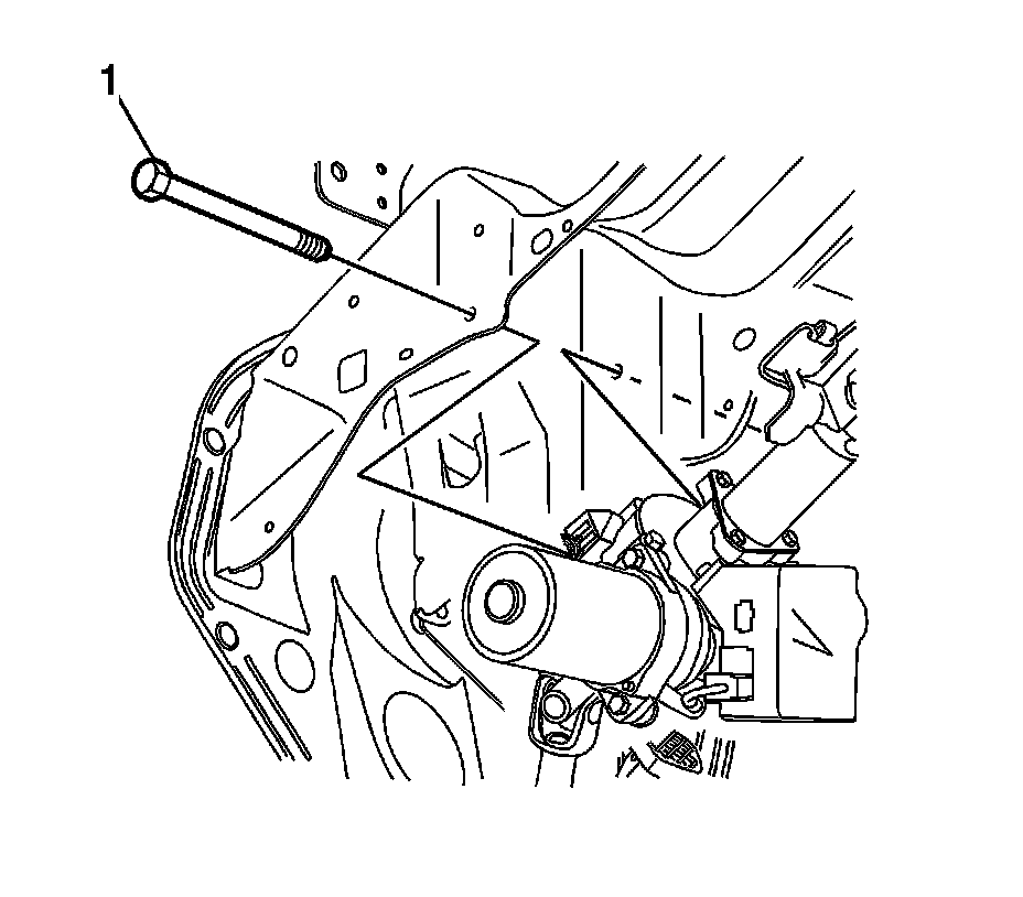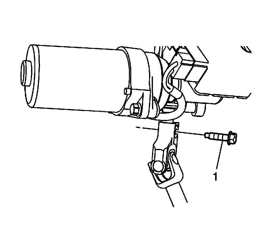 4. Install the steering column lower support bracket bolt (1) and tighten to 25 Nm (18 lb ft).