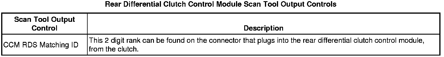 The rear differential clutch control module (CCM) Scan Tool Data List contains all the clutch control module system related parameters that are available on the scan tool. The parameters in the list are arranged in alphabetical order. The column, "Data List," indicates the location of the parameter within the scan tool menu selections.