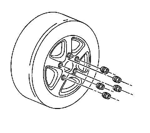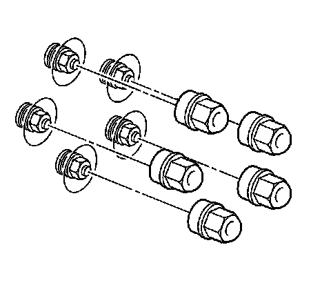Caution: A torque wrench or J 39544 must be used to ensure that wheel nuts are tightened to specification. Never use lubricants or penetrating fluids on wheel stud, nuts, or mounting surfaces, as this can raise the actual torque on the nut without a corresponding torque reading on the torque wrench. Wheel nuts, studs, and mounting surfaces must be clean and dry. Failure to follow these instructions could result in wheel, nut, and/or stud damage.
