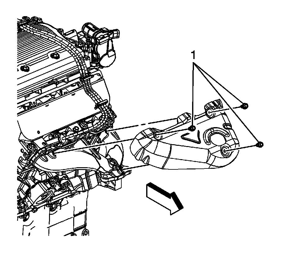 5. Remove the left side catalytic converter to exhaust manifold nuts (1).