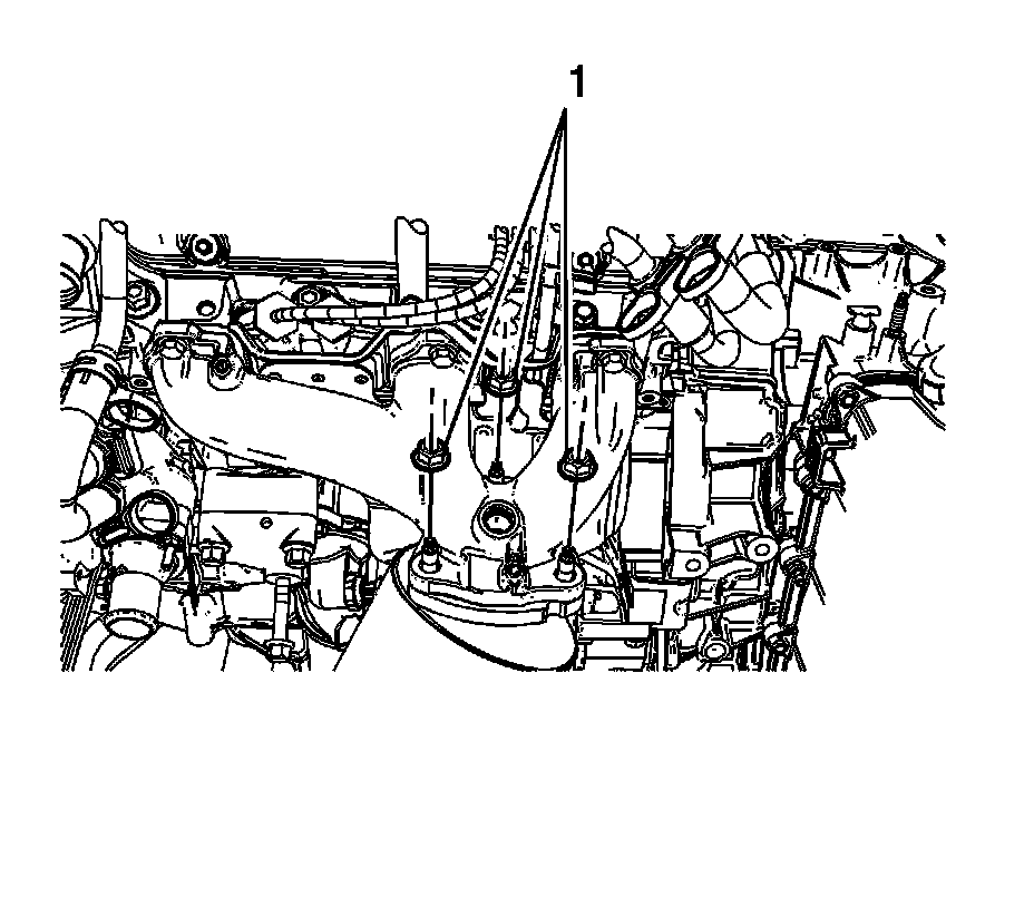4. Install the catalytic converter nuts (1) and tighten to 60 Nm (44 lb ft).
