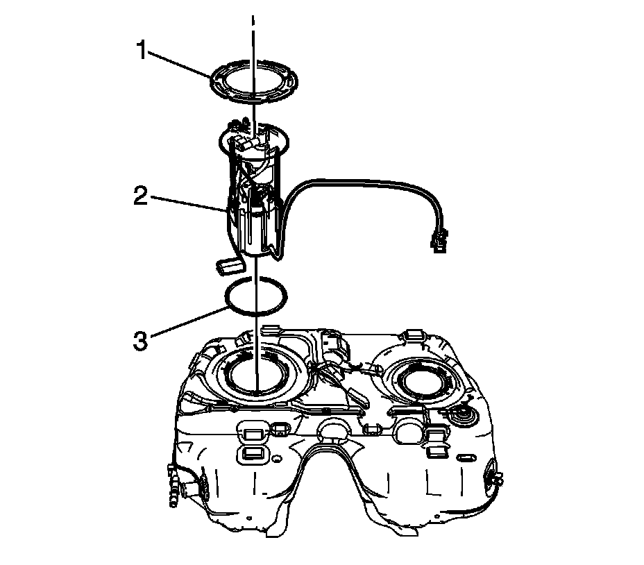 13. Remove and discard the fuel tank fuel pump module O-ring seal (3).