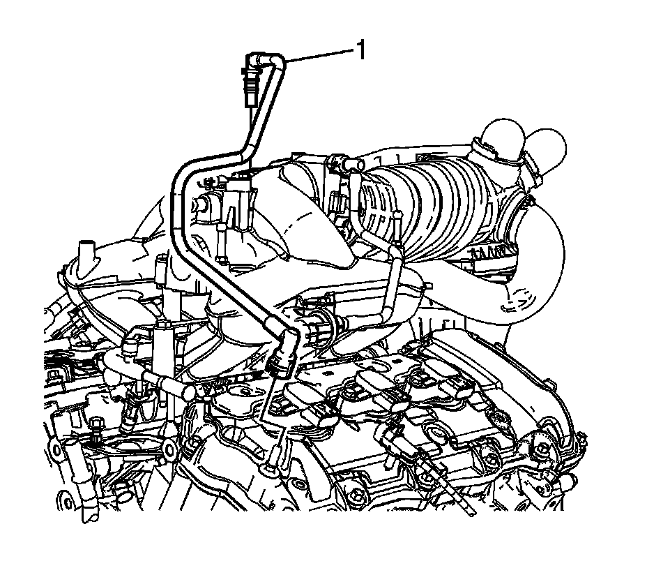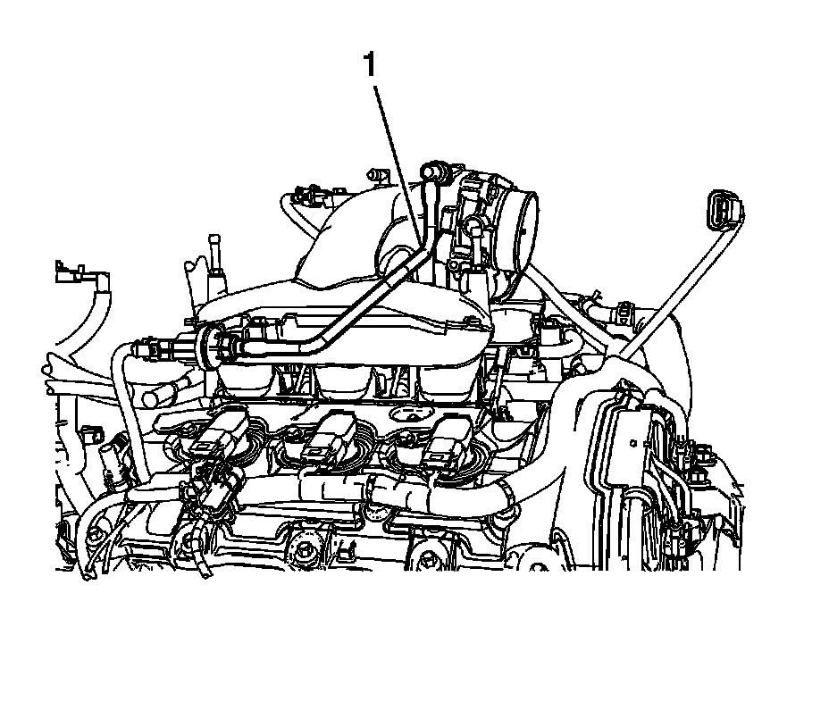 4. Disconnect the evaporative emissions (EVAP) canister purge line (1) and reposition aside.