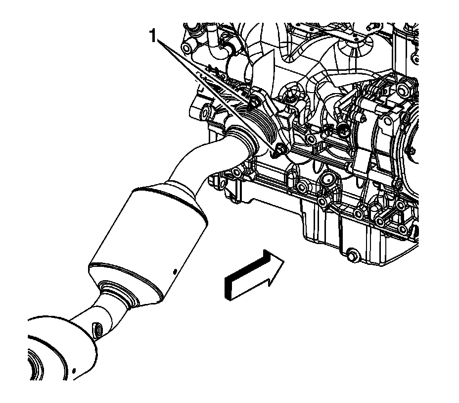 2. Remove the catalytic converter to exhaust manifold nuts (1).