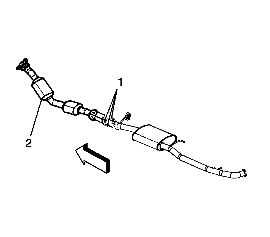 1. Install the catalytic converter (2) along with a NEW gasket to the exhaust manifold.