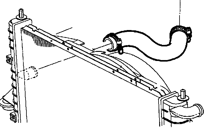 15. On A/C equipped vehicles, remove upper radiator seal.