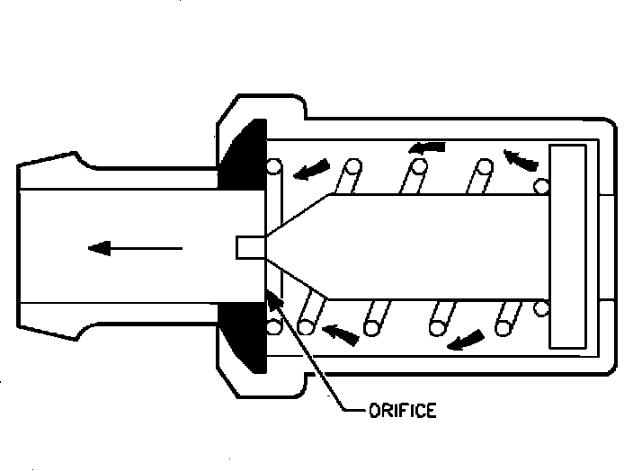 The PCV valve, consists of a needle valve, spring and housing. When the engine is "OFF", the spring holds the needle valve closed to stop vapors from entering the intake manifold. When the engine is running, manifold vacuum lifts the valve off its seat and allows crankcase vapors to enter the intake manifold. To maintain idle quality, the PCV valve restricts the flow when the intake manifold vacuum is high. In case of an engine backfire, in the intake manifold, the valve closes. This stops the backflow of gases and prevents the ignition of fuel vapor in the crankcase.