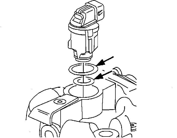 1. Lubricate new upper and lower O-rings with clean engine oil and place the upper one on the injector and the lower one in the fuel meter body injector cavity. Ensure that the upper O-ring is in the groove and the lower one is properly installed in the fuel meter body cavity.