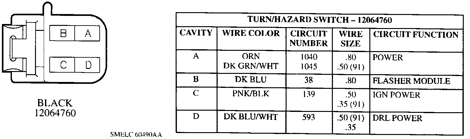 Turn/Hazard Switch Connector: