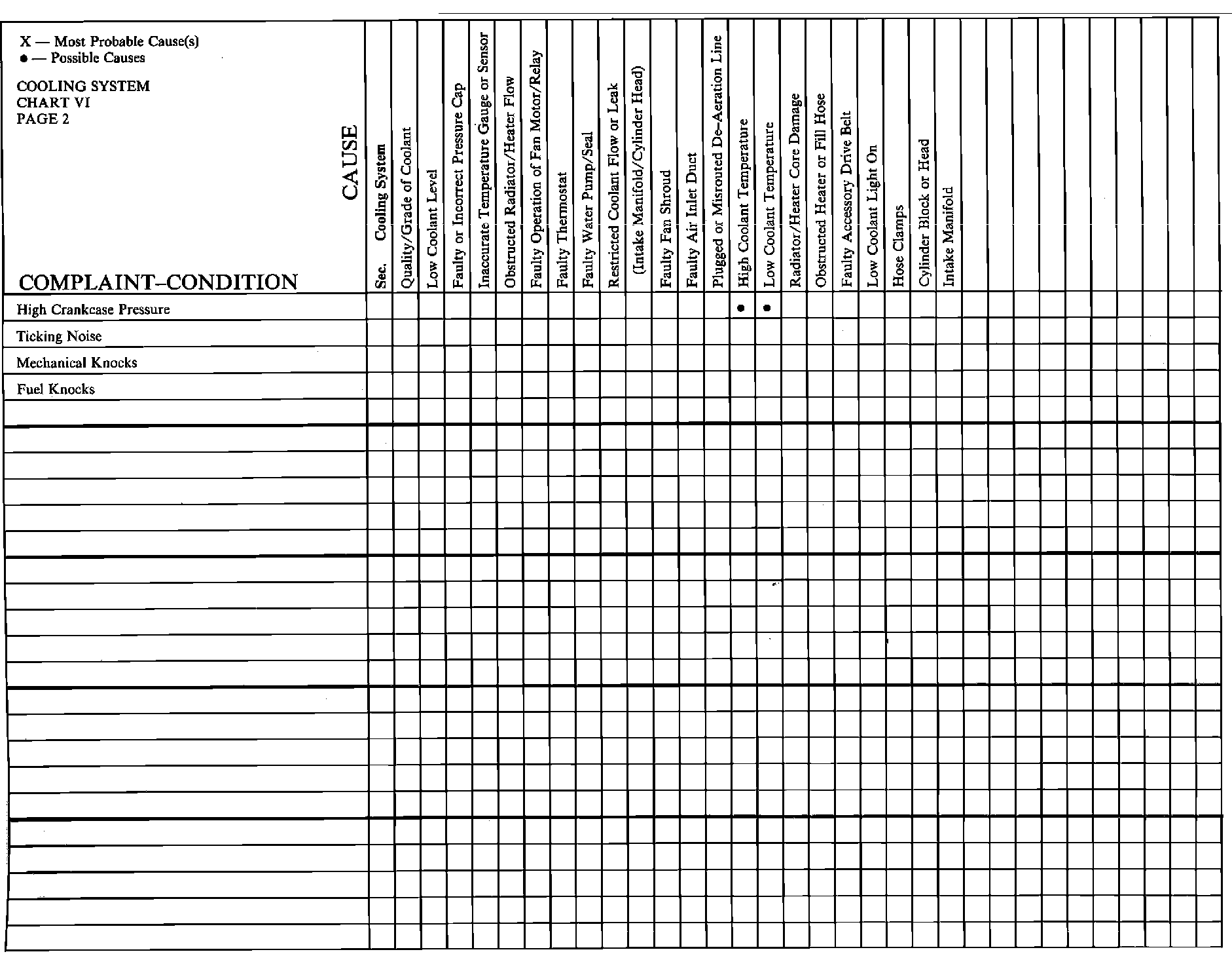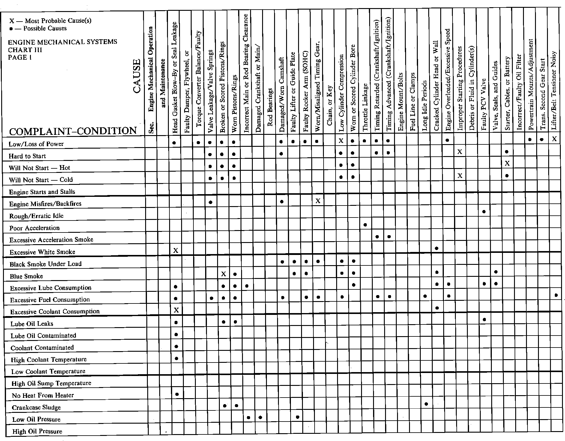Engine Mechanical Complaint Chart, Part 2.: