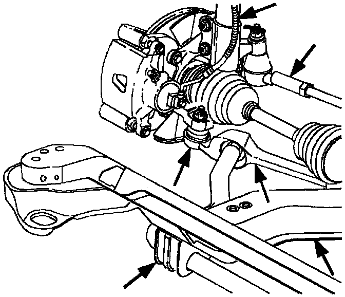 c. Check lower control arms for worn ball studs, worn bushings, or bent arms.