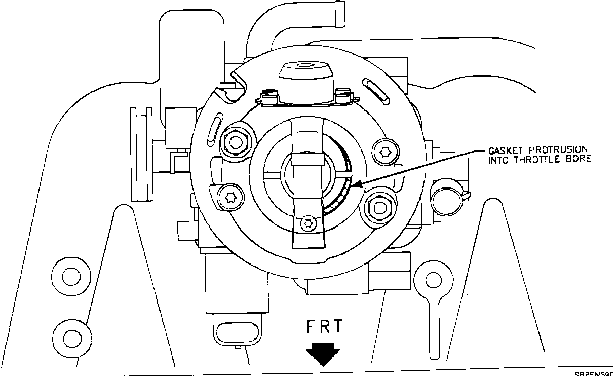 IMPORTANT: After the TBI unit has been completely installed and the bolts torqued to specification open the throttle blade and inspect the throttle body bore to make sure that none of the gasket is protruding into the throttle bore. If the edge of the gasket does protrude into the throttle bore, it must be replaced.